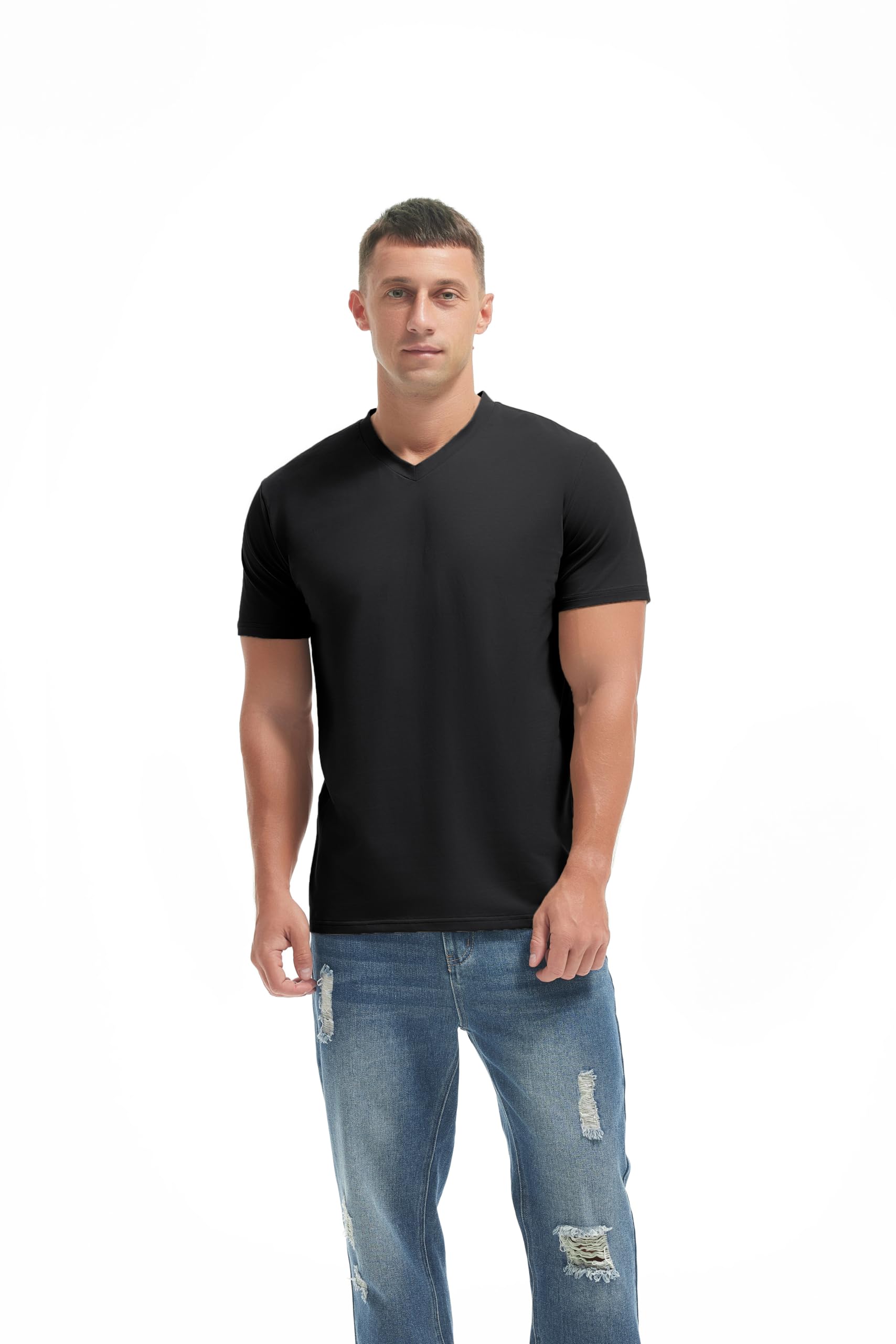 VEIISAR Premium V Neck T Shirts for Men - Modern Fitted Tees Vneck Undershirts V8 Black S