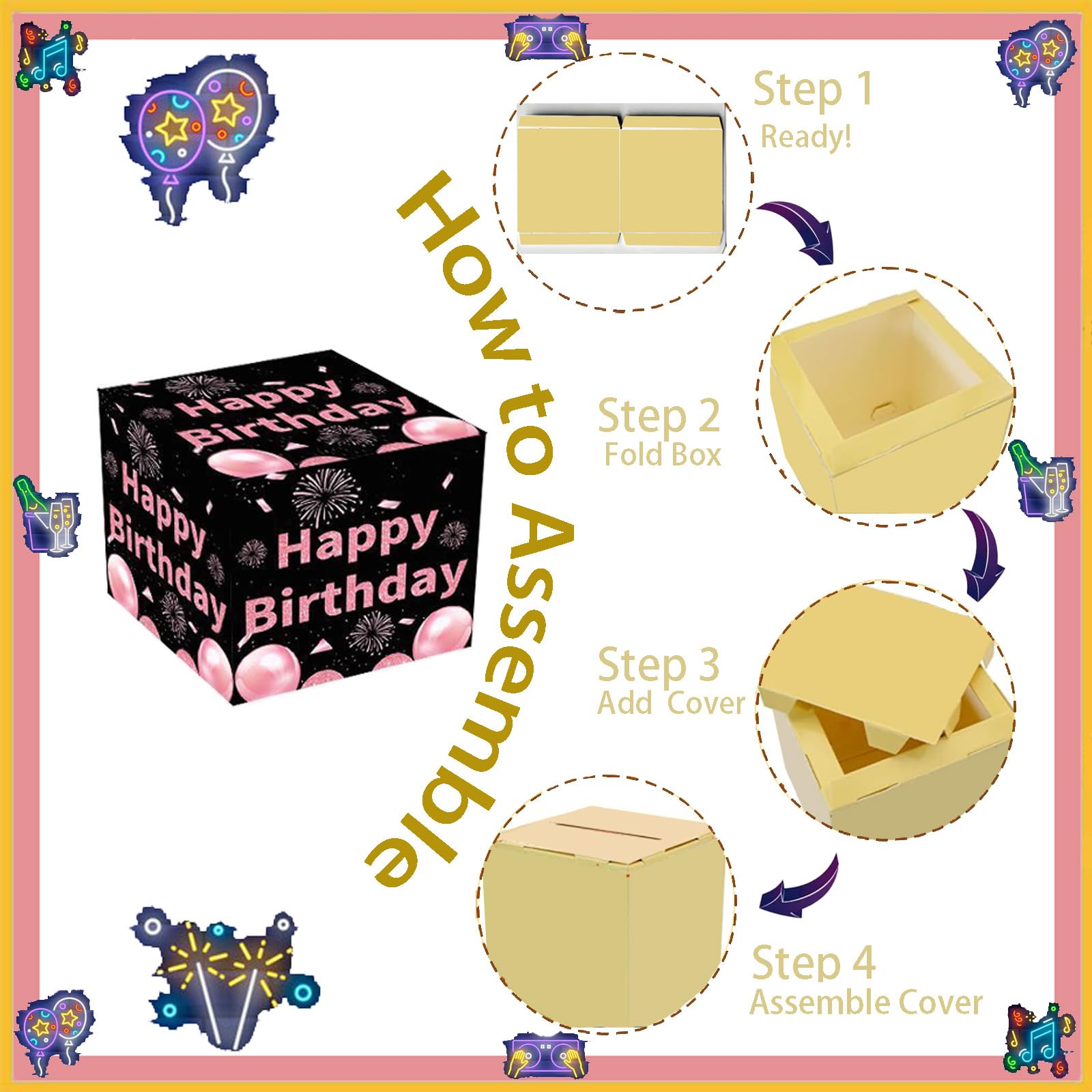 【Various Ocassions Suited】The surprise birthday box explosion is suitable for various of occasions whether it's birthday party,festval or holiday celebrations at any age, capable of expressing good wishes and blessings perfectly by putting inside no matter cash, cards, pictures or any other gifts you can imagine.money roll gift box makes a big surprise and liven up the enoyable atmosphere!
