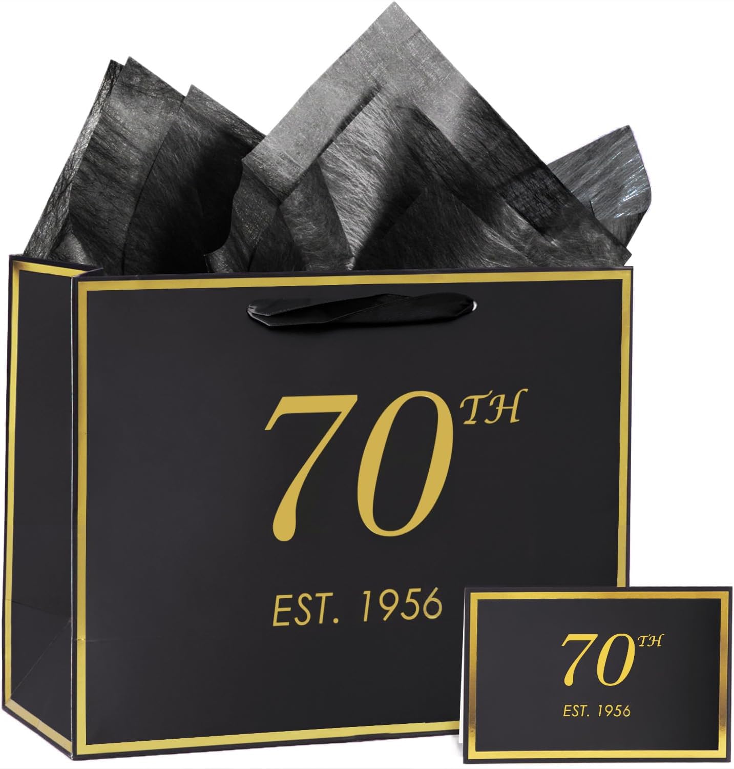 momoake 70th Birthday Gift Bag with Card and Tissue Paper for Men Women, 1955 70 Year Old 13" Elegant Black Gold Anniversary Keepsake Party Present Shopping Paper Bags for Gifts Wrapping