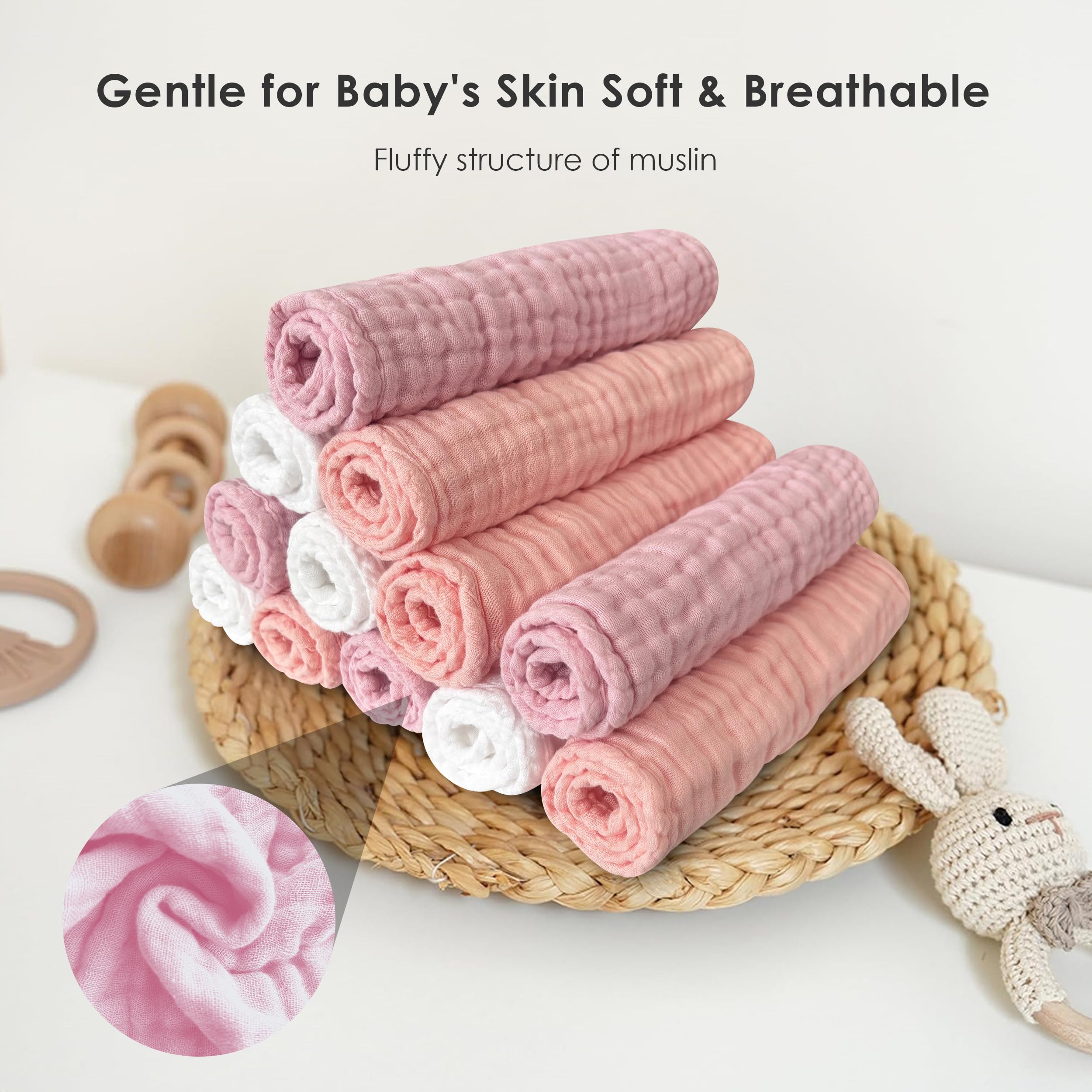 ๐ Versatile Baby Essentials: Featuring a gender-neutral color palette, our muslin burp cloths make a thoughtful gift for baby showers, baby registry, birthdays, or Christmas holidays. They can be used as burp rags, washcloths, towels, wipes, and more, making them a must-have for teething babies and mess-free parenting.