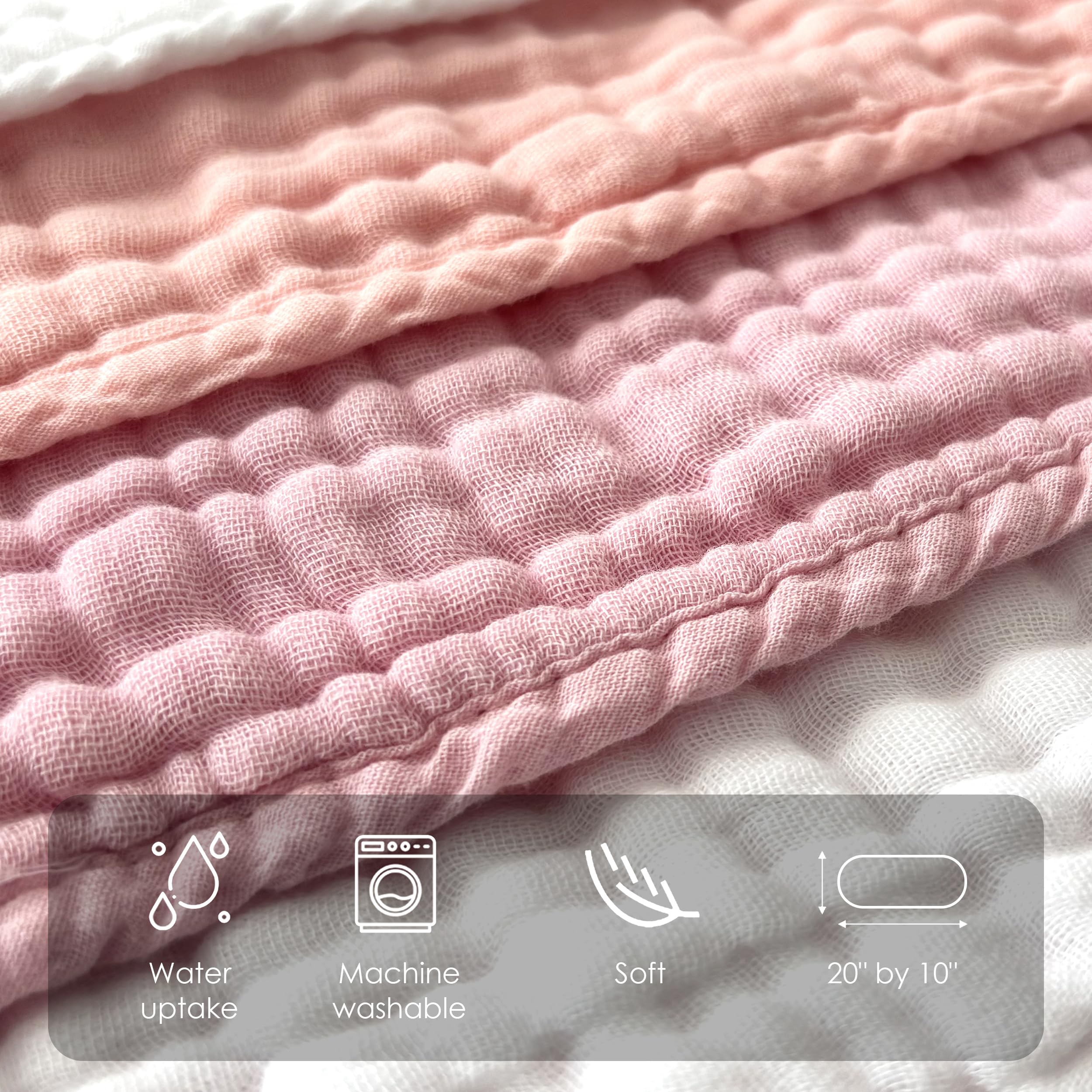 ๐ Super Absorbent: With 4 layers of absorbent muslin and a fluffy design, our burping cloths offer maximum absorption with a gentle touch. Protect your teething baby from dribbles and spit-ups while keeping their clothes dry. The large 20"x10" size provides full coverage and extra durability for year-round use.