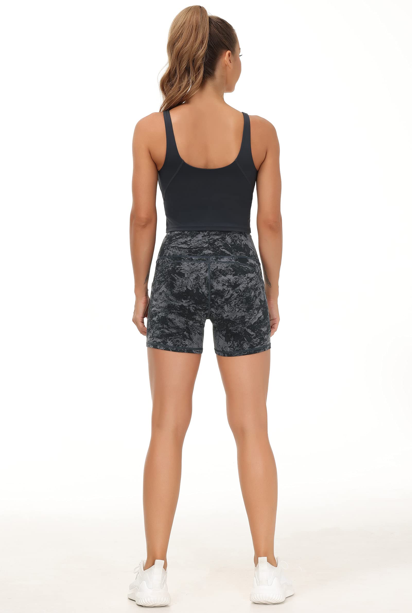 [Keep Perfect Shape] - High-waisted style with tummy control design. Wide waistband contours body curves and streamlines shape help to promote yoga shorts both compression and support.