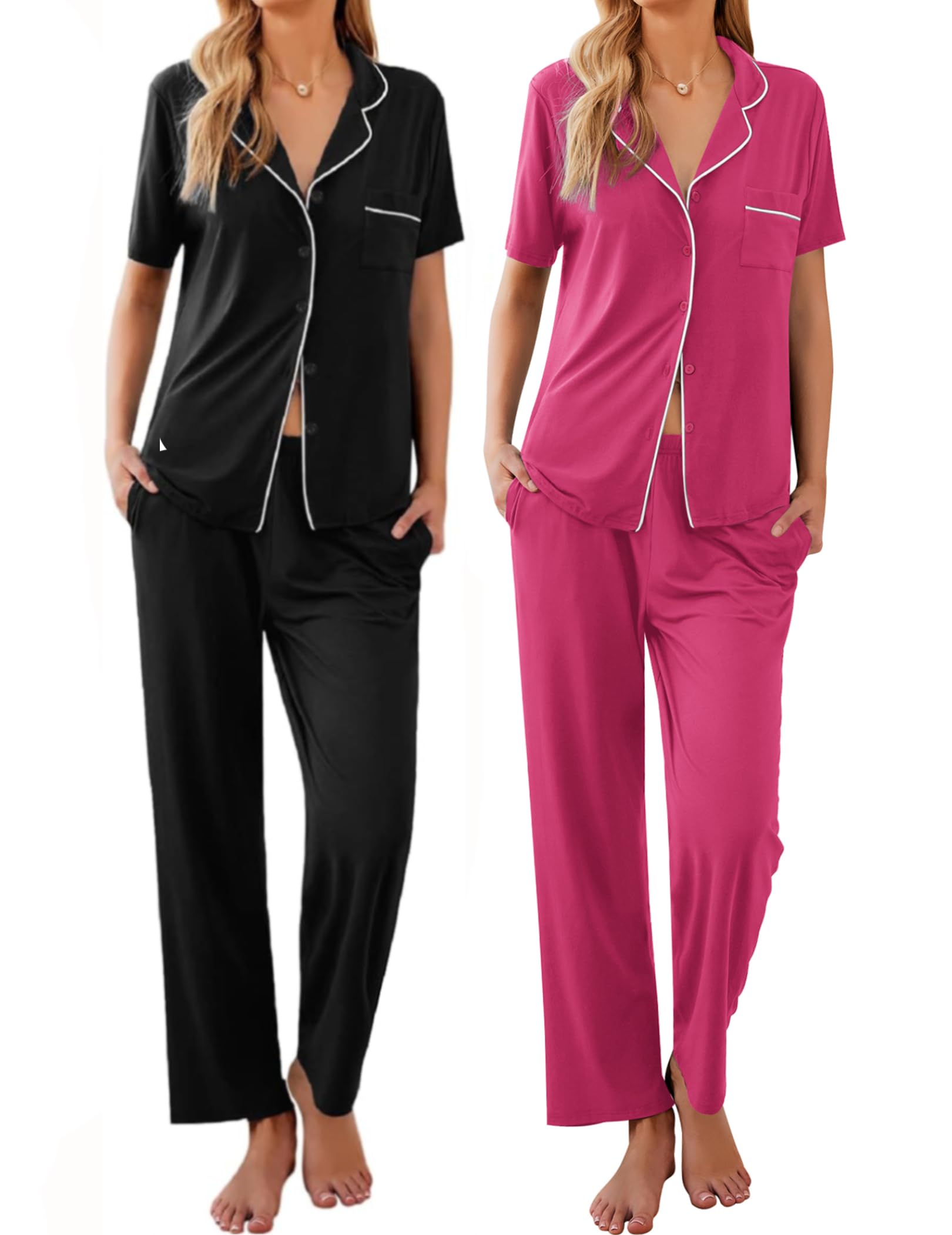 Classic Pajamas Set: Casual short sleeve sleepwear is perfect for a relaxing day or night. You can wear it after the shower and relax completely. And it is also great for lounging, sleeping, labor, party pajamas, girls day, wedding pajamas