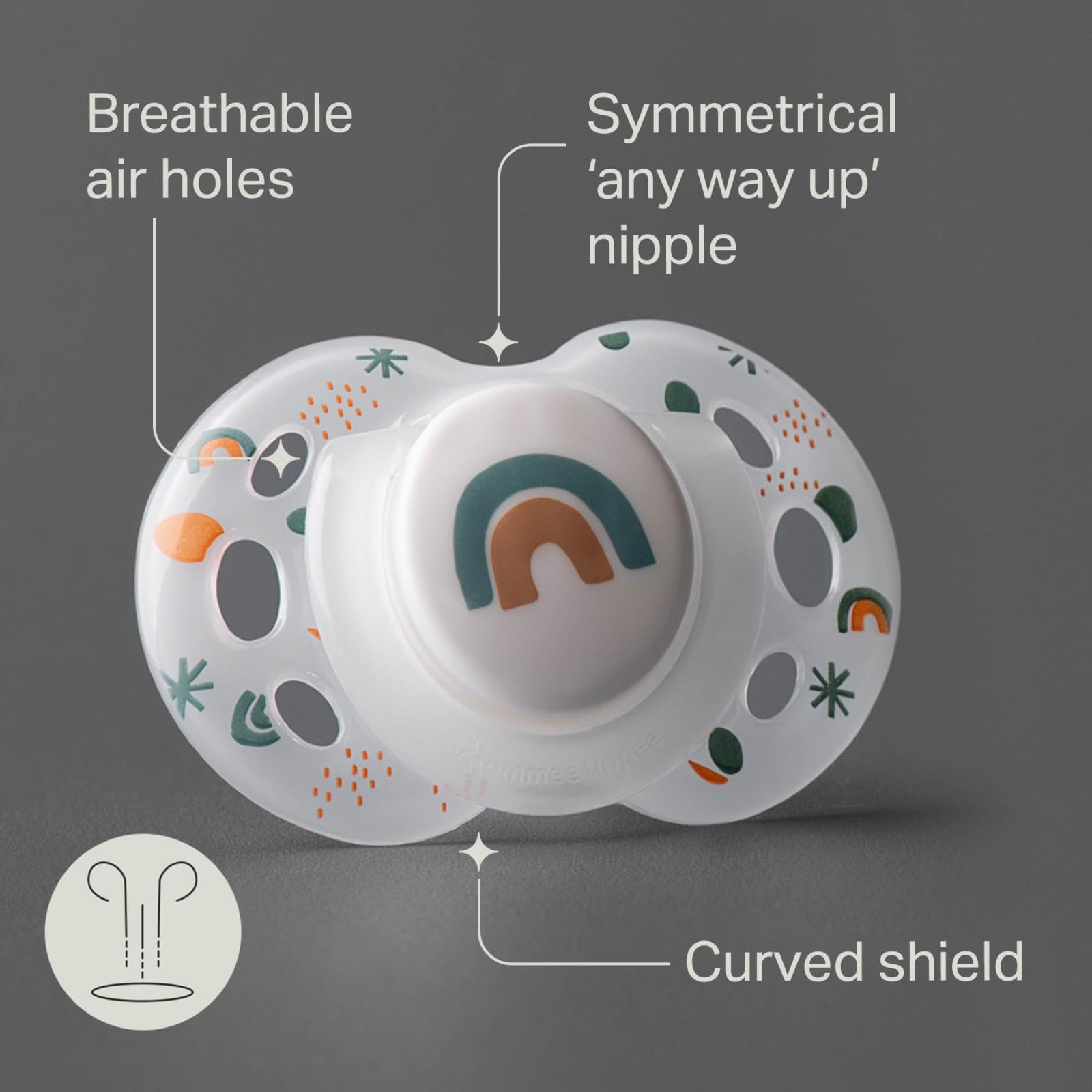 Tommee Tippee - caring for parents since ‘65. Trusted by three generations of parents and caregivers, we have 60 years of expertise behind us. We know what works, what doesn’t, and what you (and your baby) really need. Our purpose? To liberate and amplify the intuition of newborn parents with empathetic design. Part of becoming a parent is realizing that often, things don't quite go to plan. That’s why we anticipate problems before they’ve even happened, and design smart solutions to help. Tommee Tippee baby pacifiers are designed in a range of different shapes, colors, and styles to suit your baby (and you). They're gentle on delicate skin, and expertly engineered to comfort babies, turning cries into smiles. From breast-like to ultra-light silicone and everyday, our paci collection is made to soothe babies from birth and beyond.