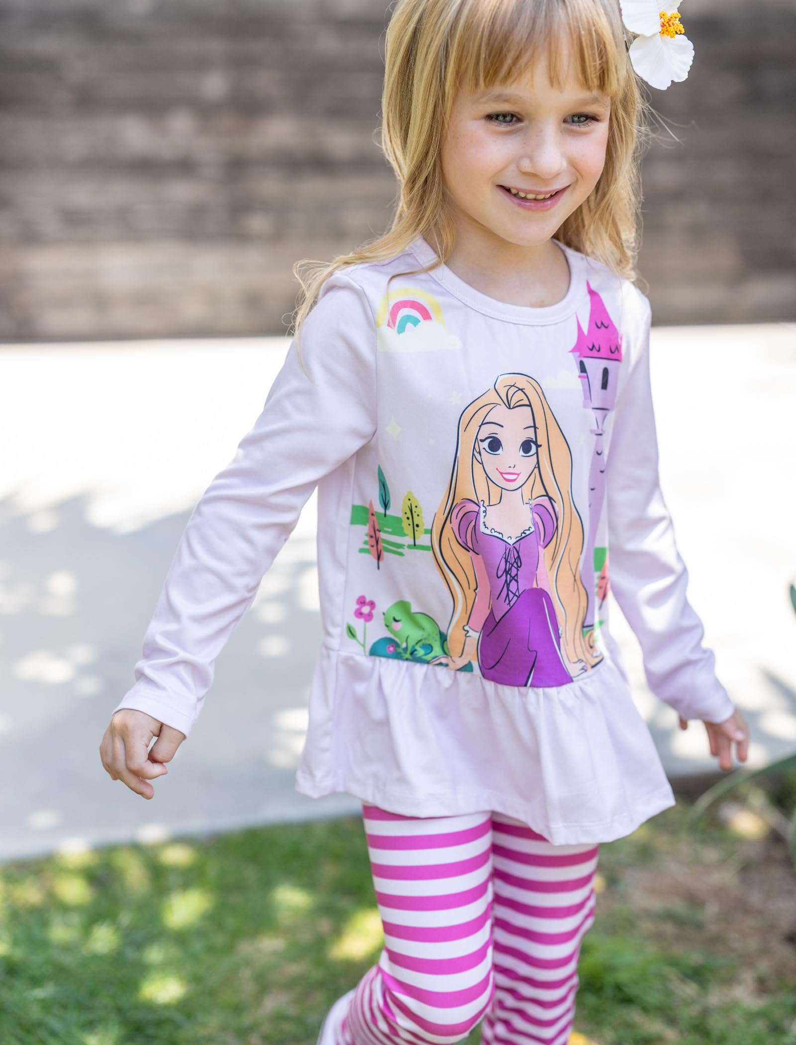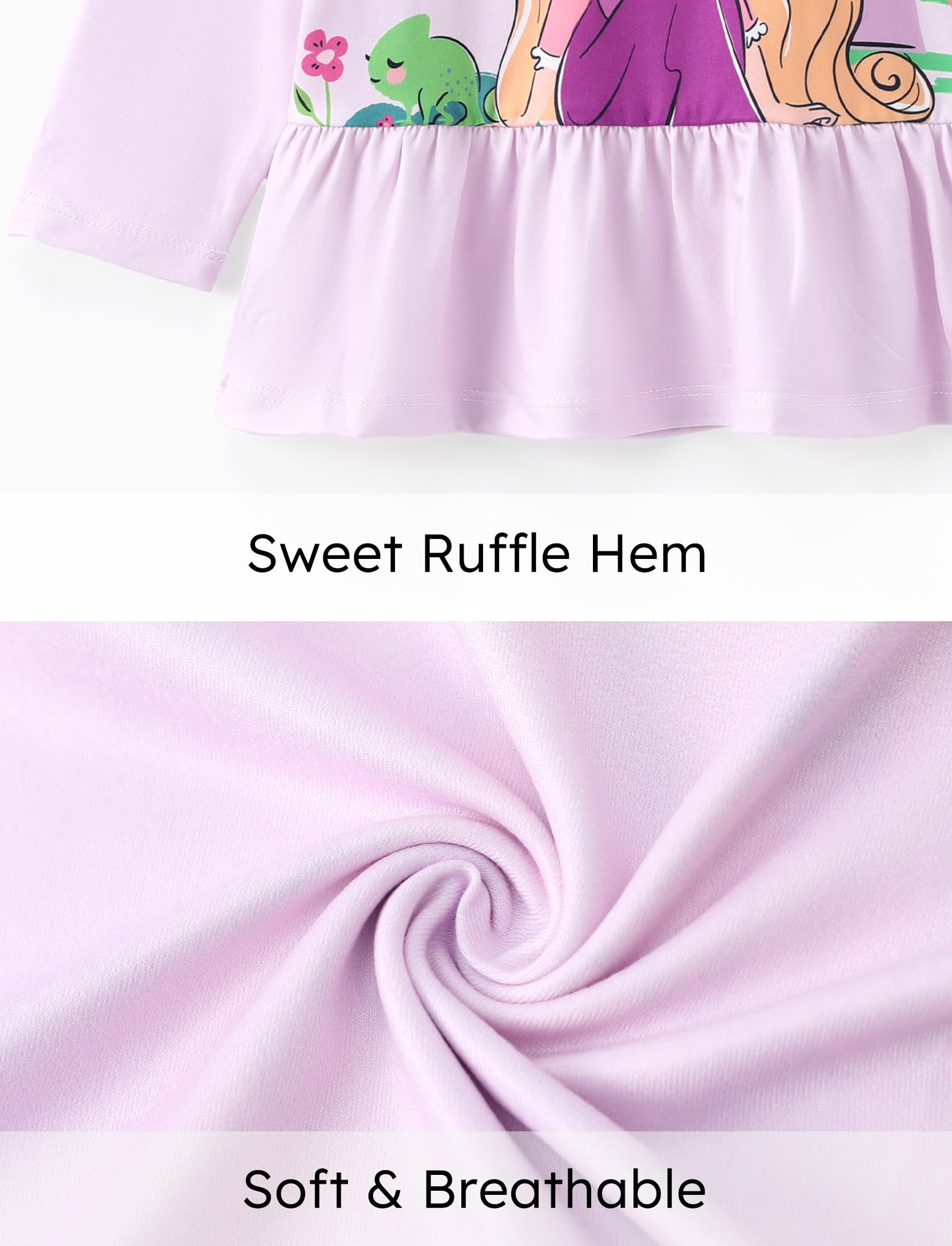 Unique Design: Featuring a classic Disney Rapunzel print and a cute ruffle edge design, this girls two piece outfit set combines loveliness with elegance. The unique and charming ensemble toddler clothes for girls ensures your little kids stand out with charm and confidence.