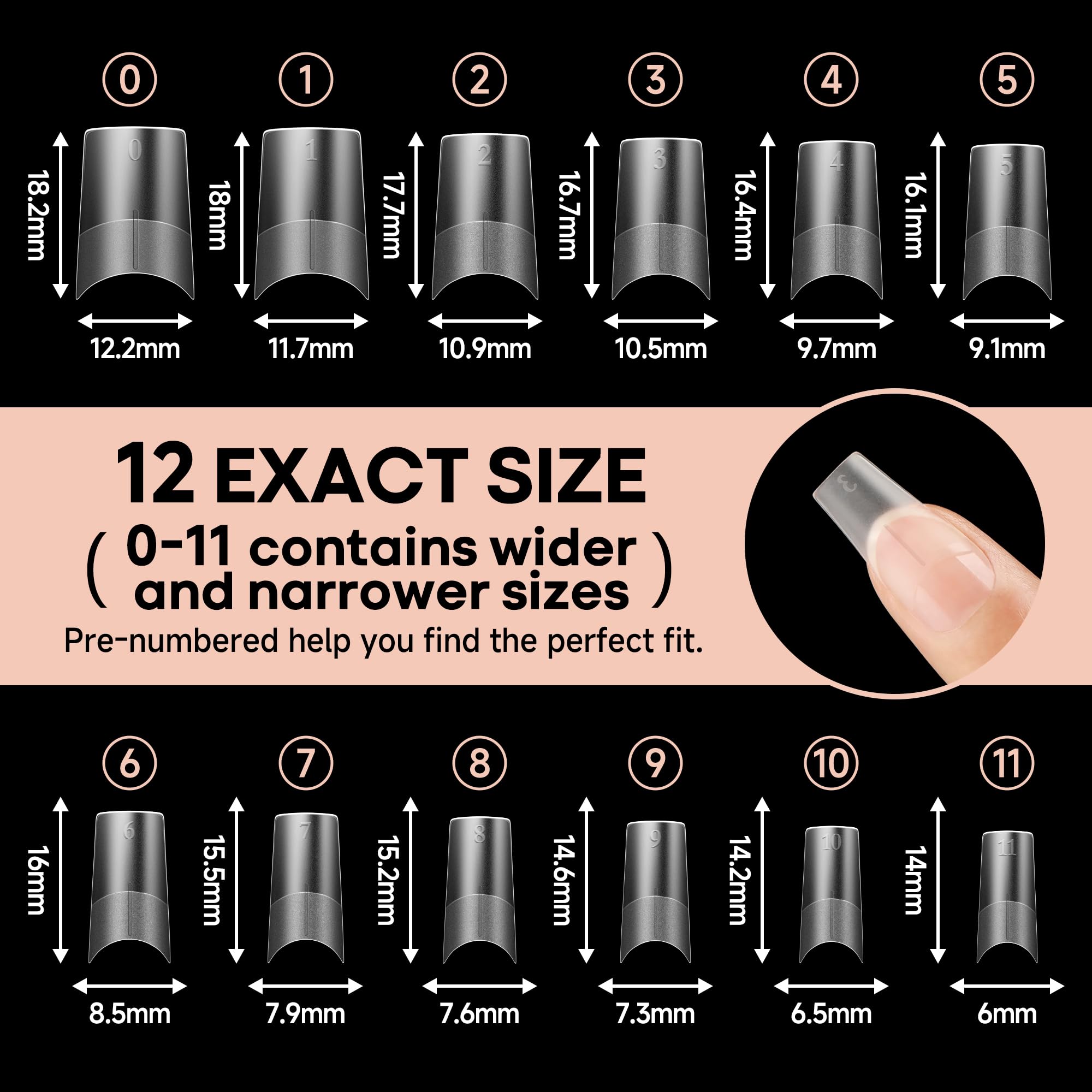 💅EASY TO APPLY-These fake nails square come with a position line design, friendly to starter and professional to better alignment and adhesion. Pre-numbered marked on each false nail tips, you can quickly find the suitable size. You will receive 216pcs 12sizes medium square nails. Both delicate and practical, no harm to your nails, just to give you better professional nail care.