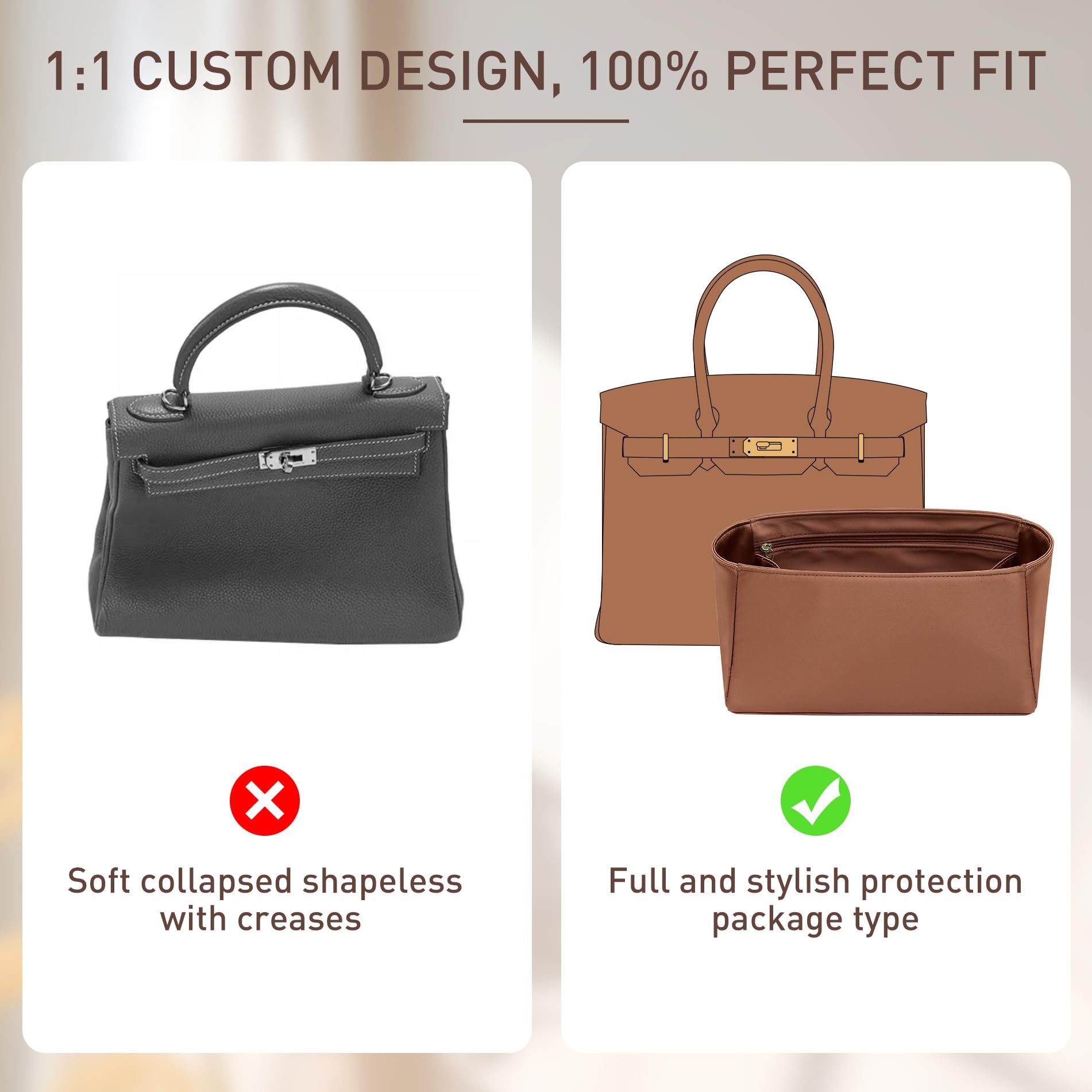 Luxury Bag Protection: The satin lining prevents color transfer and scuffs from hard objects, extending your Birkin's lifespan. Unlike generic inserts, our purse organizer insert won't leave marks or deform delicate leather interiors.