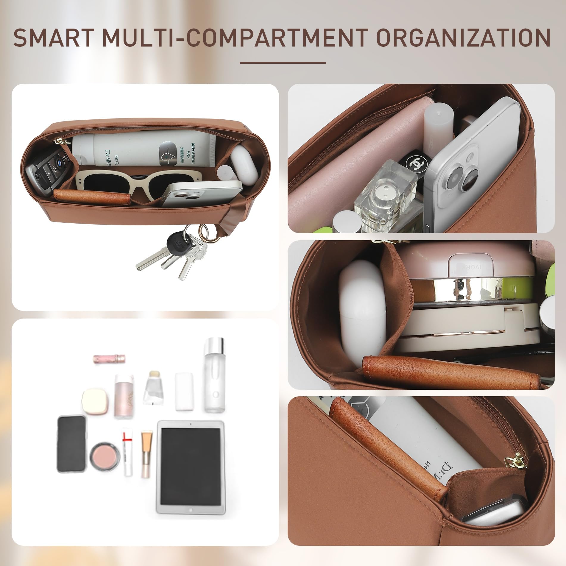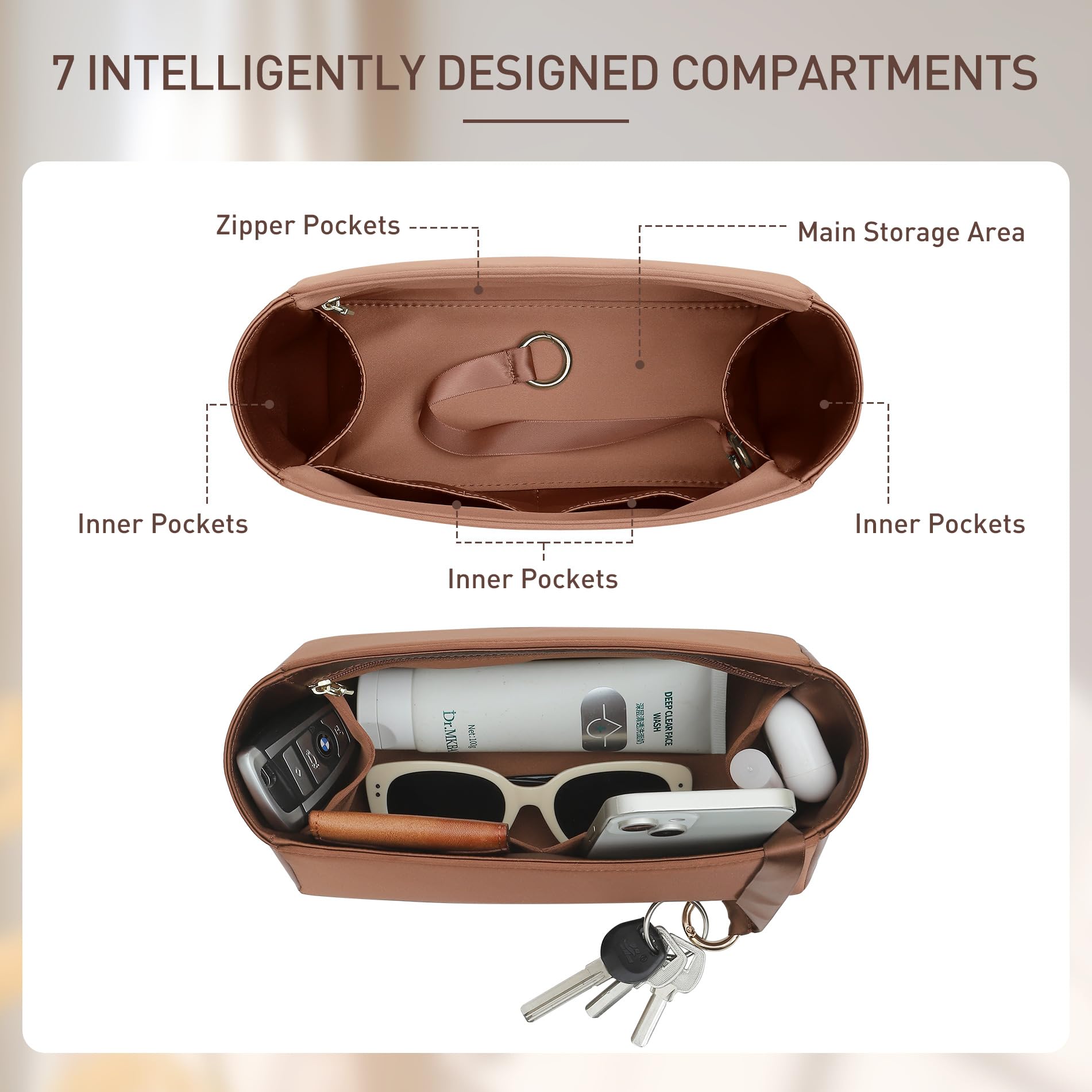 Multi-Functional Storage: Features 6 strategically placed pockets, including a secure zippered compartment, to hold cosmetics and essentials. Innovative keychain design with anti-lost features—never misplace your keys again. The bag organizer insertmaximizes space efficiency while keeping items easily accessible—ideal for daily use.