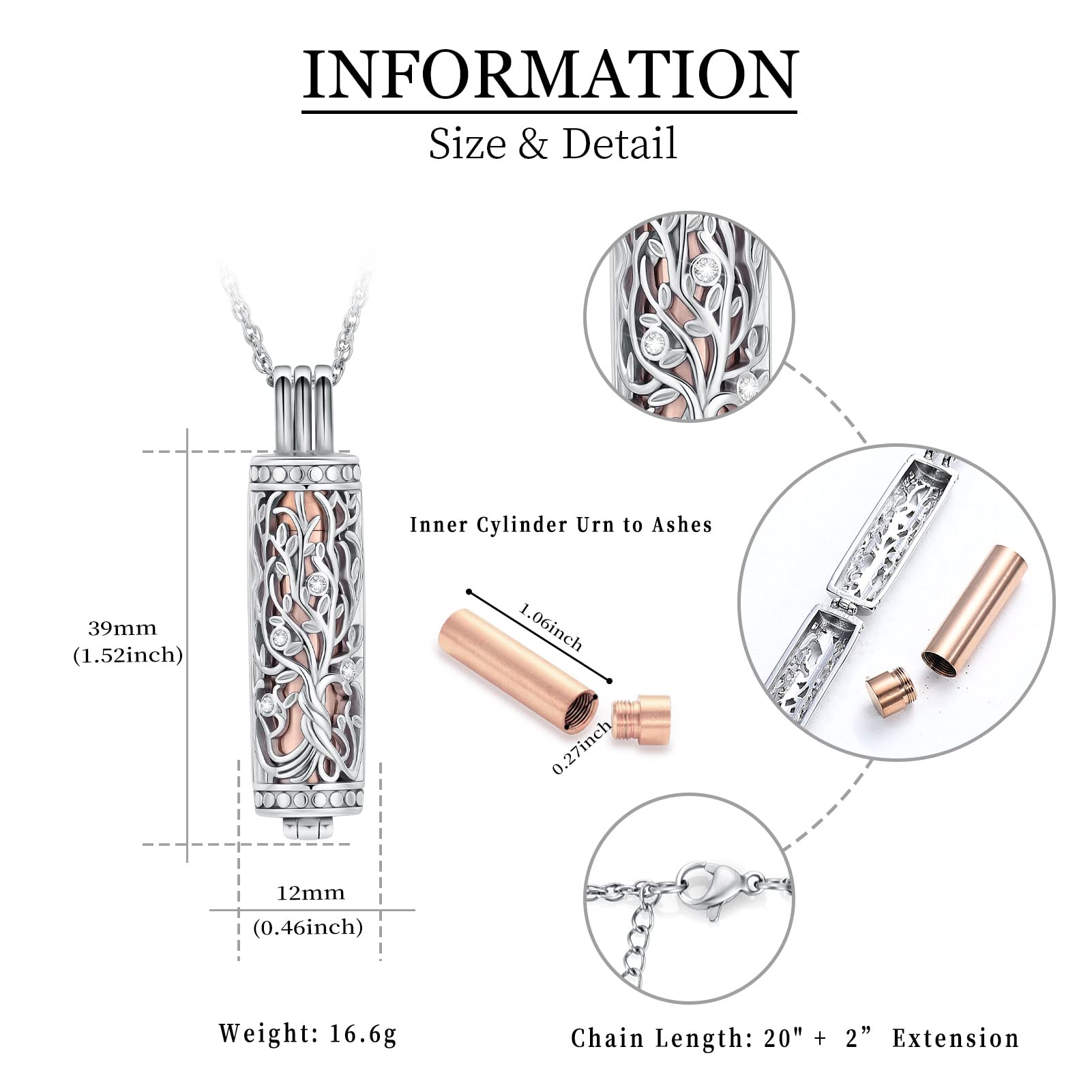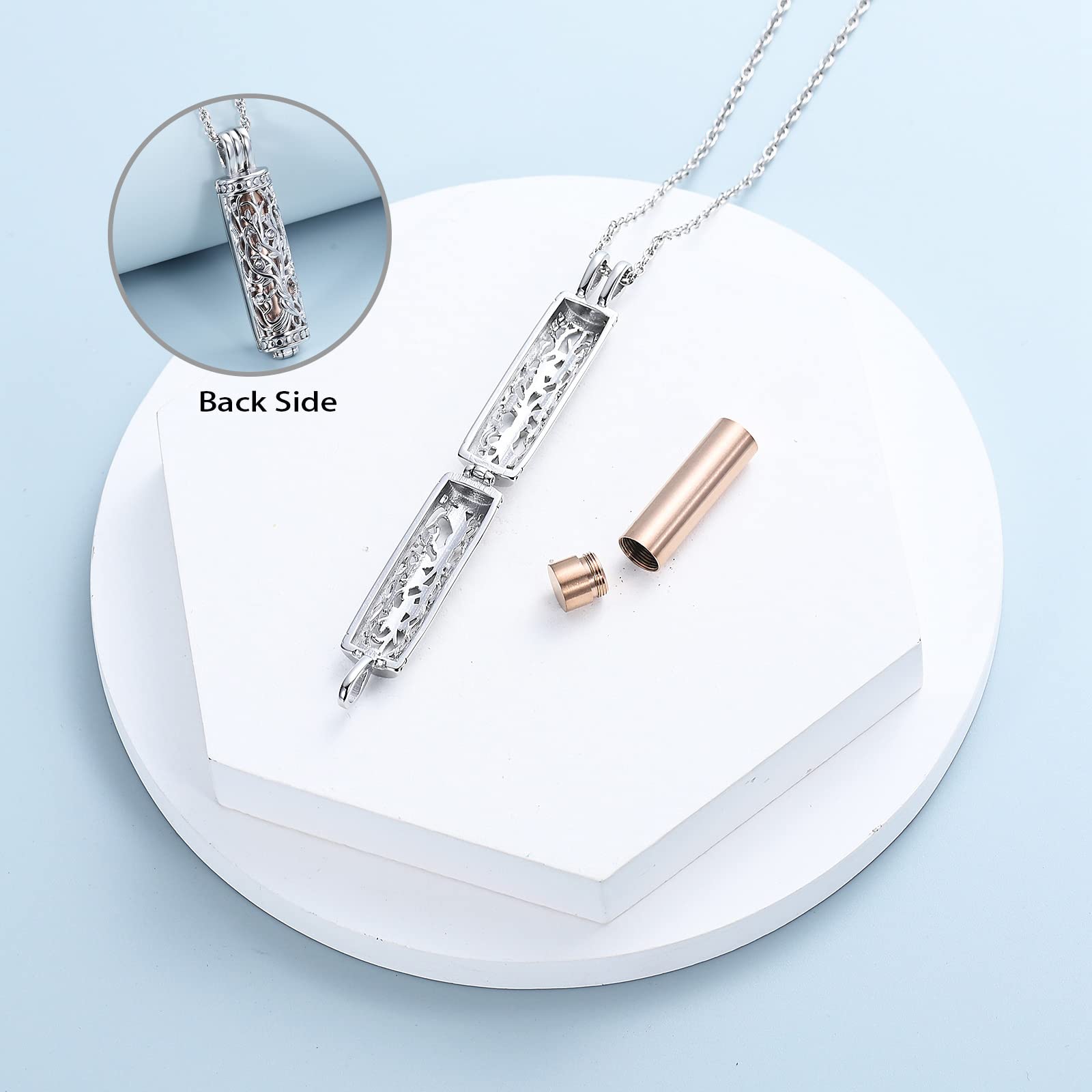 【Material】Made of stainless steel, special cylinder urn necklace with hollow tree of life design,durable,waterproof, elegant and fashionable, makes you more attractive.