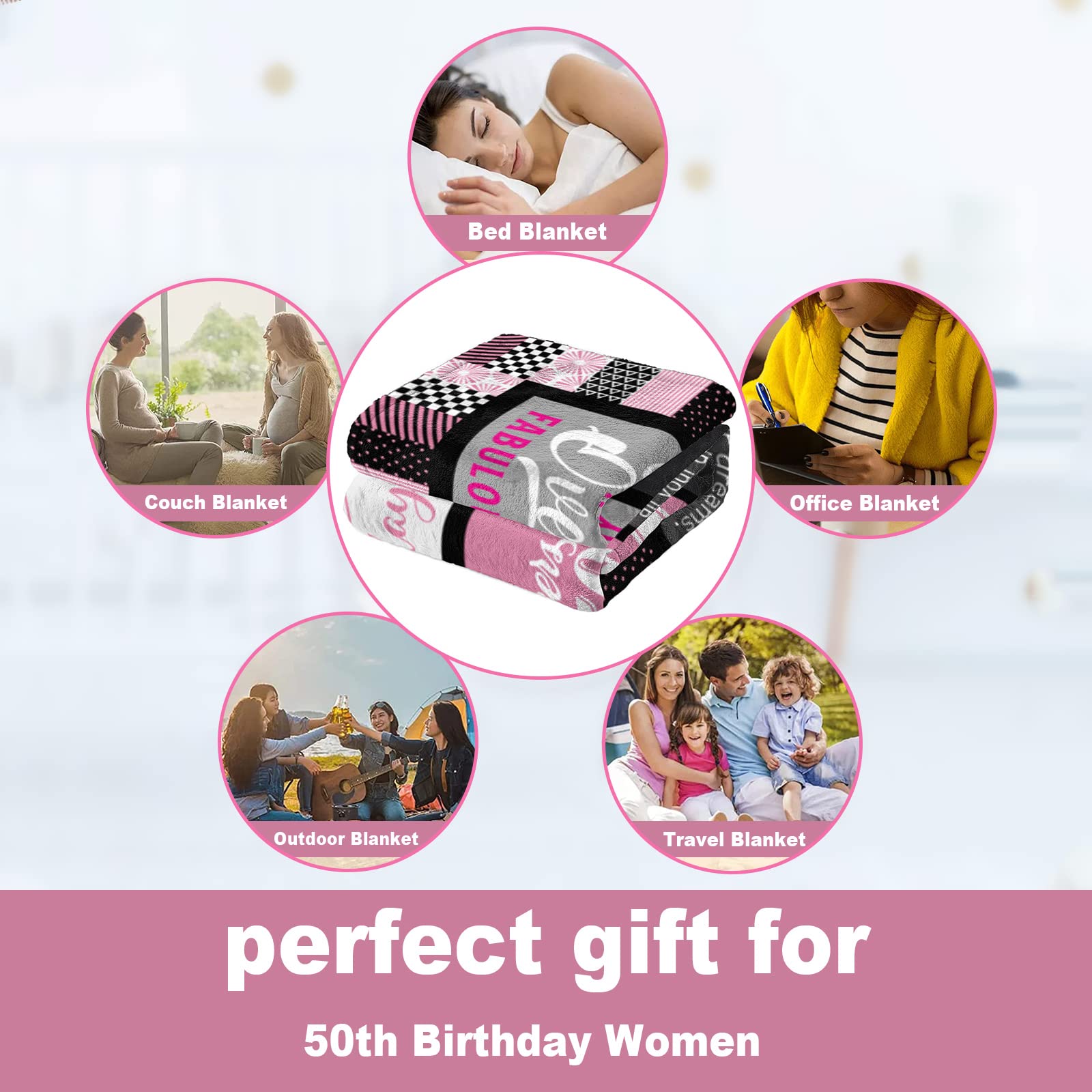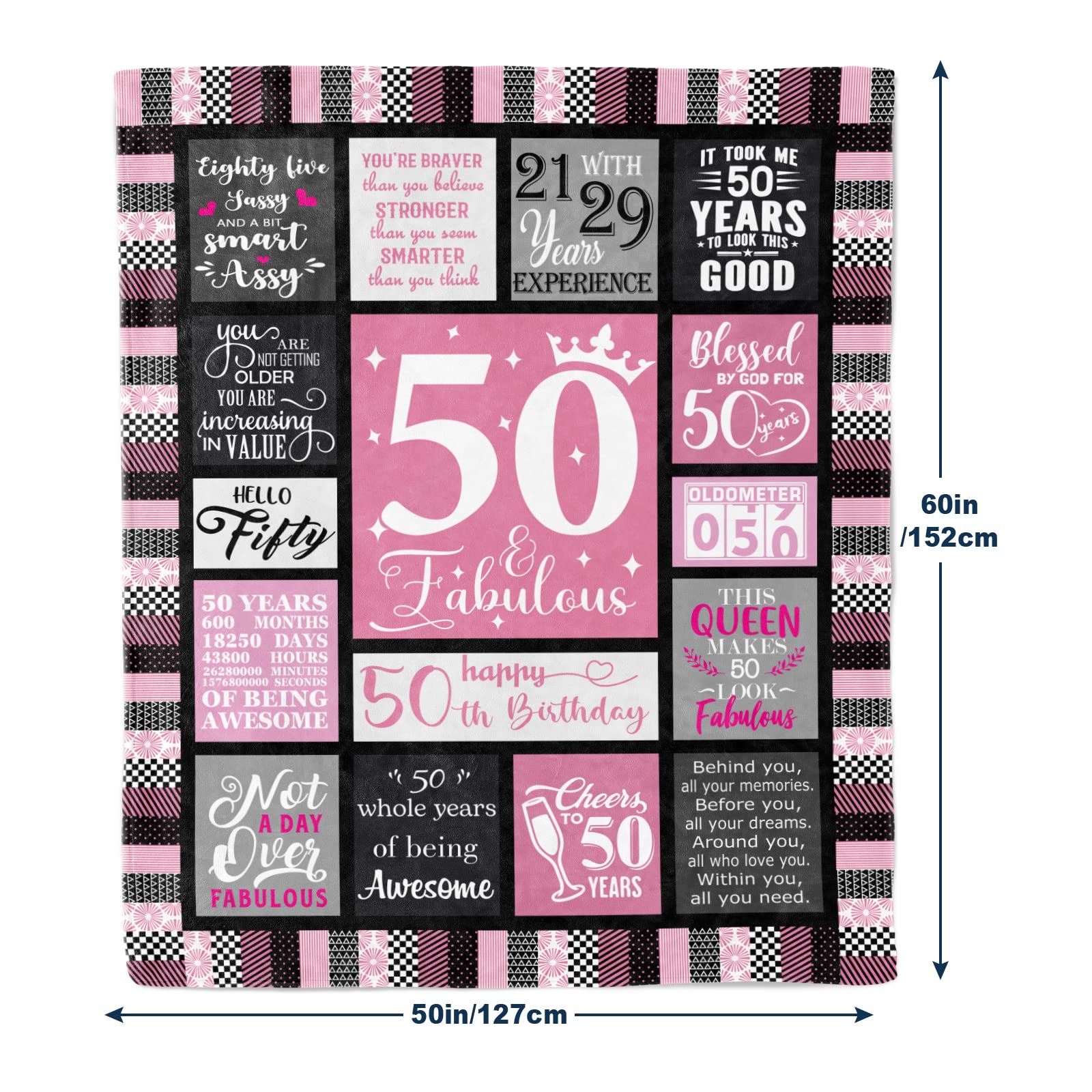 【50TH BIRTHDAY GIFT 】Happy 50th Birthday! 50th Birthday Gifts for Women. 50th Birthday is a Major Milestone on the Road and One That is Definitely Worth Celebrating. Designed for the 50th Birthday, 50 Year Old Gifts for Women.This Flannel Blanket is a Super Soft Material Perfect for Expressing Love and Warmth. This Birthday Blanket Can Be At Birthday Parties to Express Wishes and Love Given to Relatives and Friends, Such As Mother, Dad, Wife, Husband, Aunt, Uncle, Brother, Sister-in-law, Grandparents, Sisters Etc.