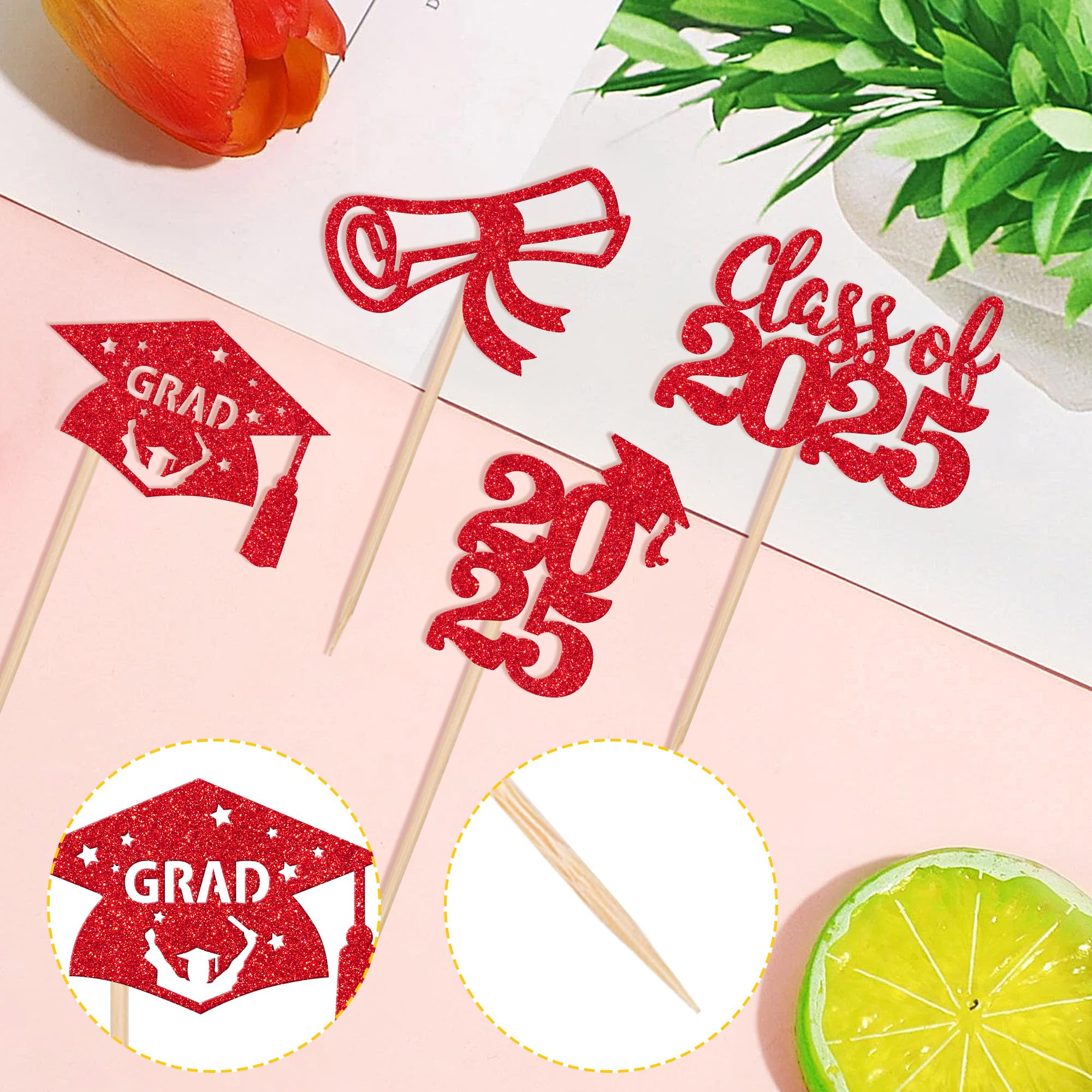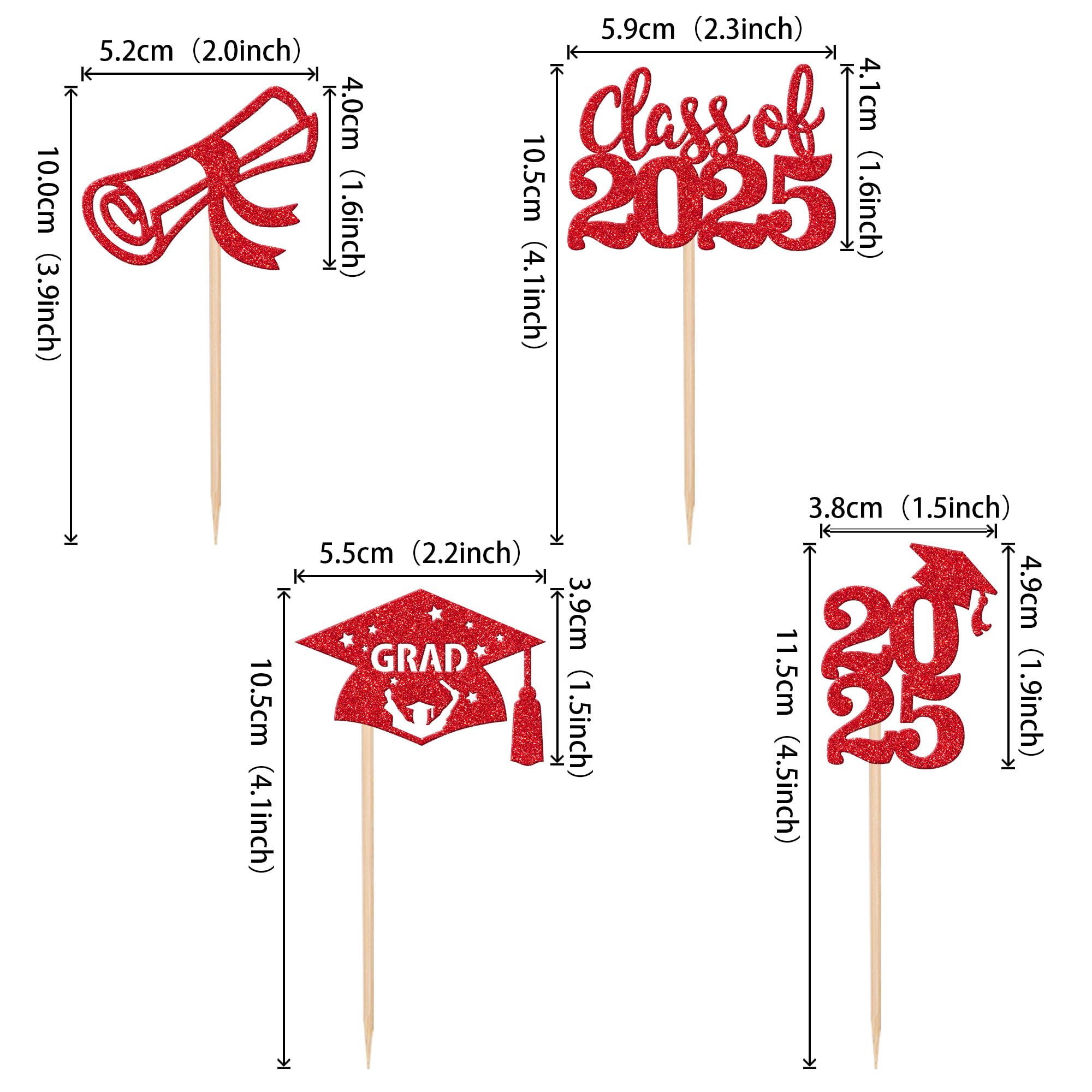 2025 Graduation Theme Party Cupcake Toppers Decorations Perfect for 2025 graduation theme party cupcake decorations, such as kindergarten, primary, junior, senior high school, college, Master or Ph.D. graduation. Pack of 24 pcs, 6 pcs of each design. The size is 2*3.9/ 2.3*4.1/ 2.2*4.1/ 1.5*4.5 inch ( with stick ) Made of high quality paper card stock,thick and thick and sturdy. These cupcake toppers are single glitter, the back is white, and they are intended for decoration only, please do not put them in oven or microwave. If the item you received has any defects, please contact us immediately. we will deal with it within 24 hours.