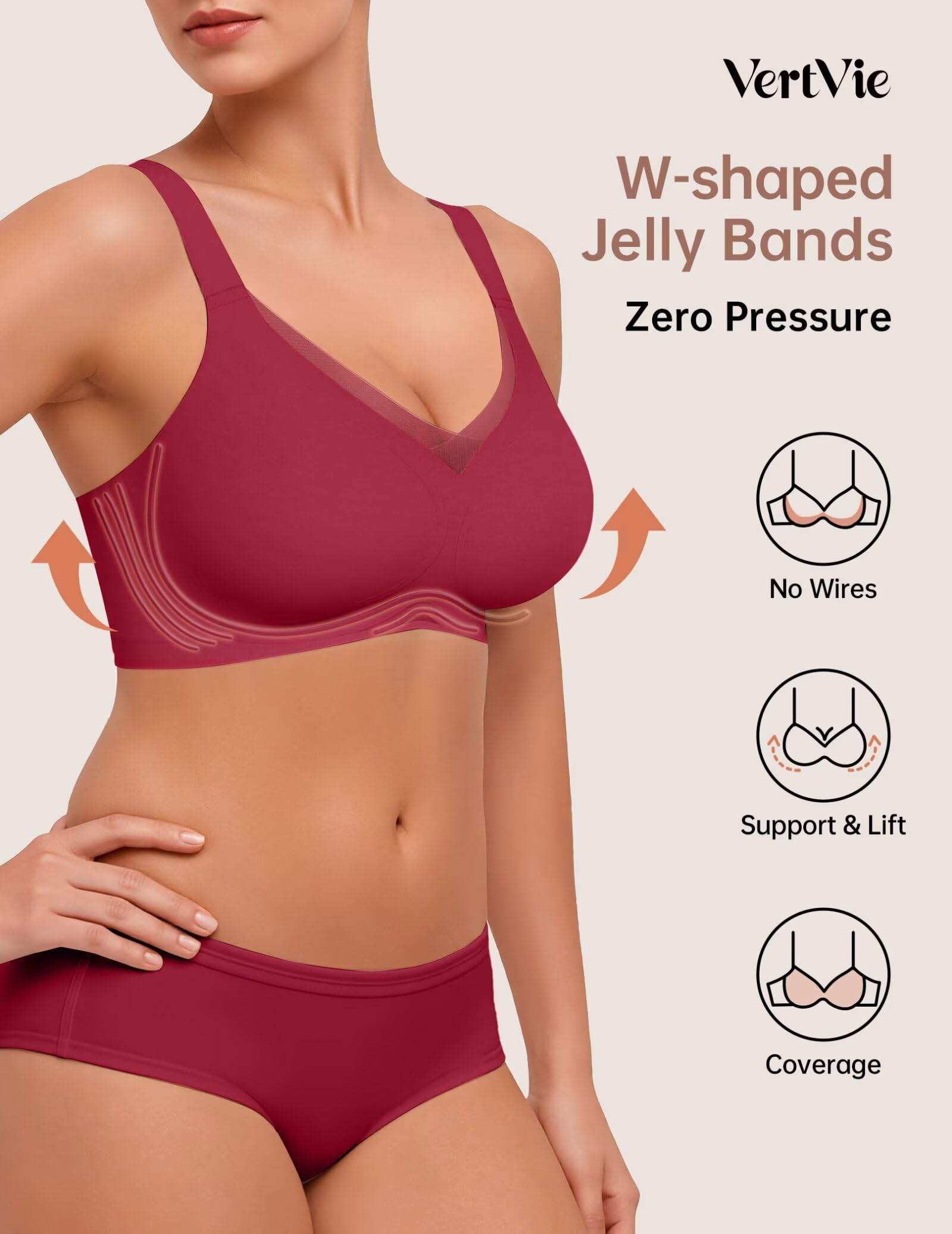 Wireless Bra with Full Support and Lift: Our women's bras feature flexible jelly bands that gently contour to your body without digging in, combined with 3D molded cups for a natural uplift and all-day support without underwire irritation. The semi-fixed pads stay perfectly in place after washing, maintaining their shape and resisting wrinkles, all while providing reliable support
