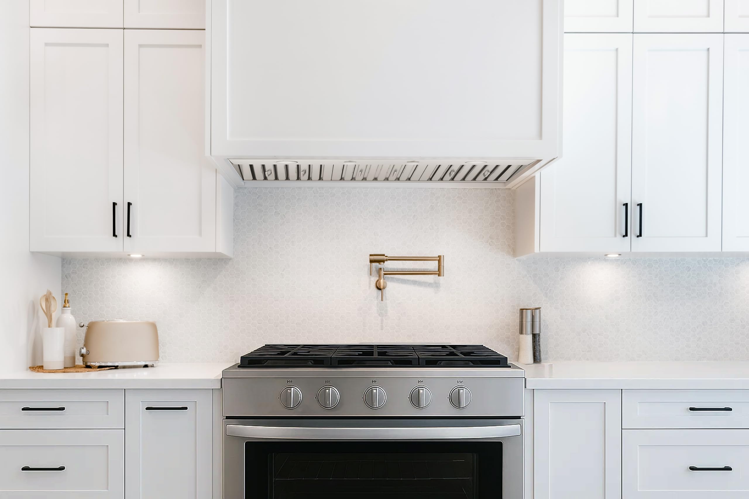 FLUSH-MOUNT DESIGN: Flush-mount installation eliminates gaps and creates a seamless built-in appearance that integrates perfectly with custom hood covers and cabinetry.