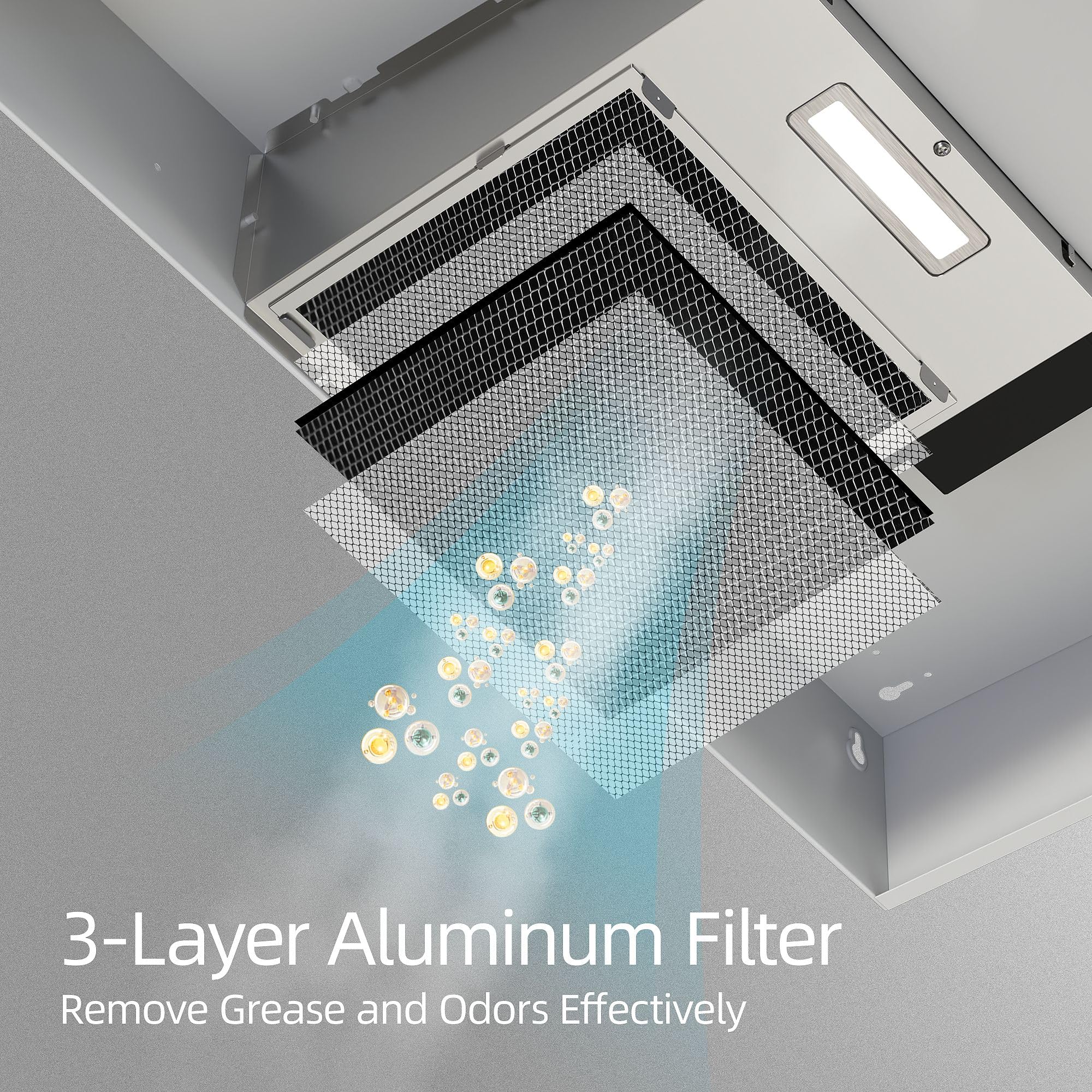 【Improves Kitchen Air Quality】Our under cabinet range hood 30 inch provides a MAX 230 CFM performance to quickly remove smoke and greese in your kitchen while keeping the noise low, and the 2-speed rocker switch allows for quick fan adjustments.
