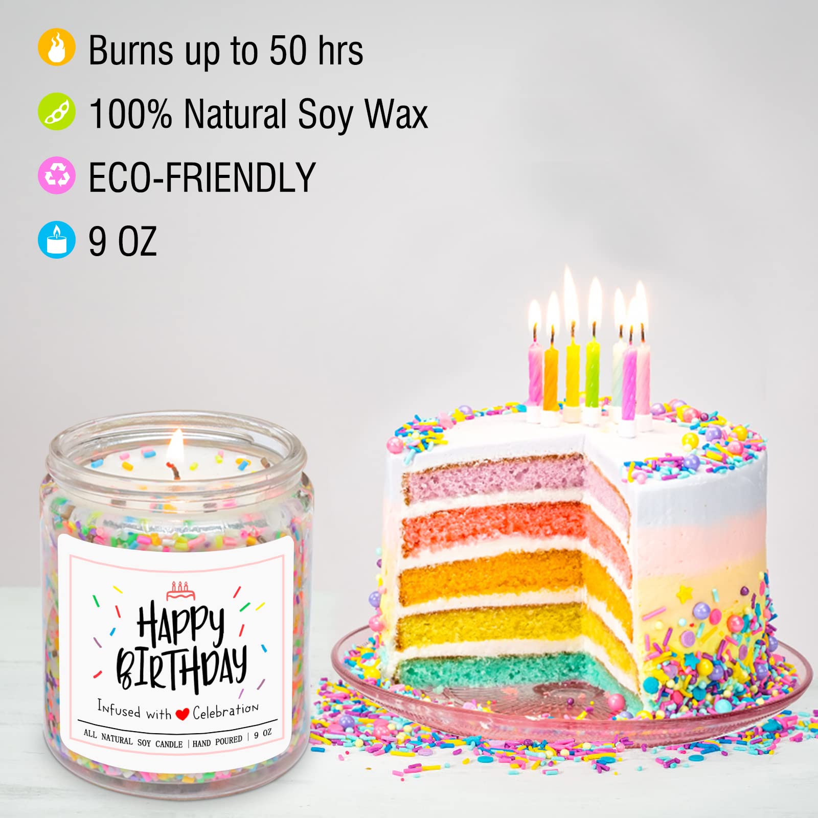 Vanilla Birthday Cake Scent: Light this candle to fill the room with the delightful aroma of birthday cake, creating a festive atmosphere. The soothing vanilla scent is also great for relaxation. It makes a fantastic birthday gift for women, best friend, mom, sister and more