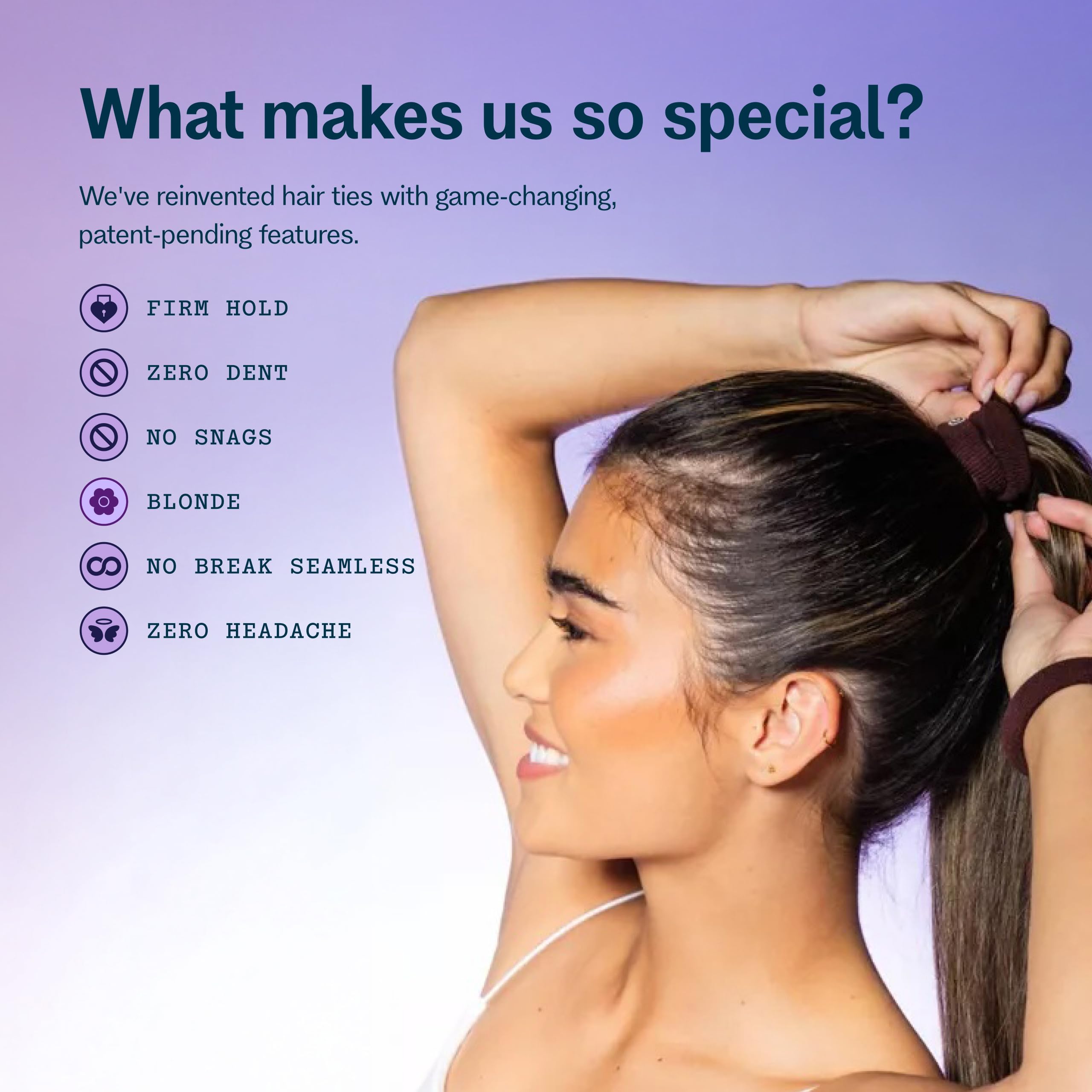 Featuring our exclusive patent-pending construction that ensures consistent elasticity for over six months of daily use. The thoughtfully engineered design eliminates common hair tie issues while providing enough strength to keep even the thickest styles securely in place. Whether you're creating a sleek look or managing natural texture, these bands deliver professional results.Experience hair accessories that work beautifully across all hair types and conditions—short hair, thick hair, thin hair, we got you covered. The versatile design adapts to your styling needs, whether you're securing fine hair in a polished ponytail or managing thick, curly hair in an updo. The innovative construction ensures reliable hold without creating unwanted tension or breakage points.These fashion-forward hair ties offer excellent value for your daily beauty routine. The durable design maintains its shape and strength through repeated washable wear, while the smooth construction provides secure hold without leaving unwanted creases. Transform your hair styling routine with bands that deliver professional results while prioritizing your hair's health.At Gimme Beauty, we believe hair solutions aren't one size fits all. We understand that each person's hair journey is unique, which is why we've designed these hair ties to work for all hair types, helping you feel confident and unstoppable in your daily life.We celebrate the sisterhood that grows from our shared experiences with hair. While some brands focus on exclusivity, we believe in creating accessible, inclusive products that work for everyone. Our mission goes beyond hair accessories—we're here to amplify your confidence because we know that confident women are unstoppable.