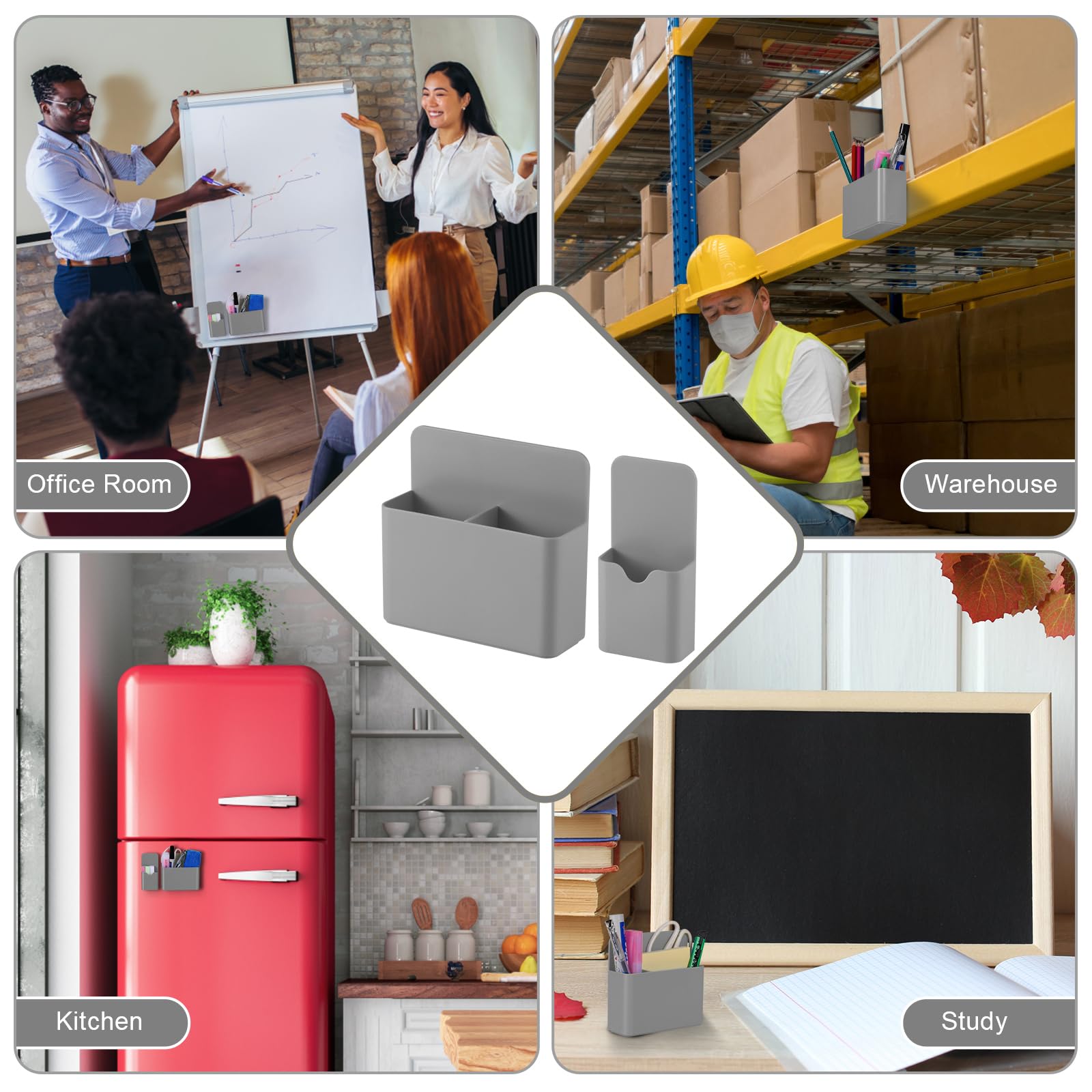 Simple and Practical:Our magnetic pen holders are suitable for holding pens, pencils, dry erase markers, erasers, rulers, children's scissors and other office, home or school supplies. Also can be served for refrigerator, whiteboard, locker or other metal surfaces.Keep your stuff always organized!