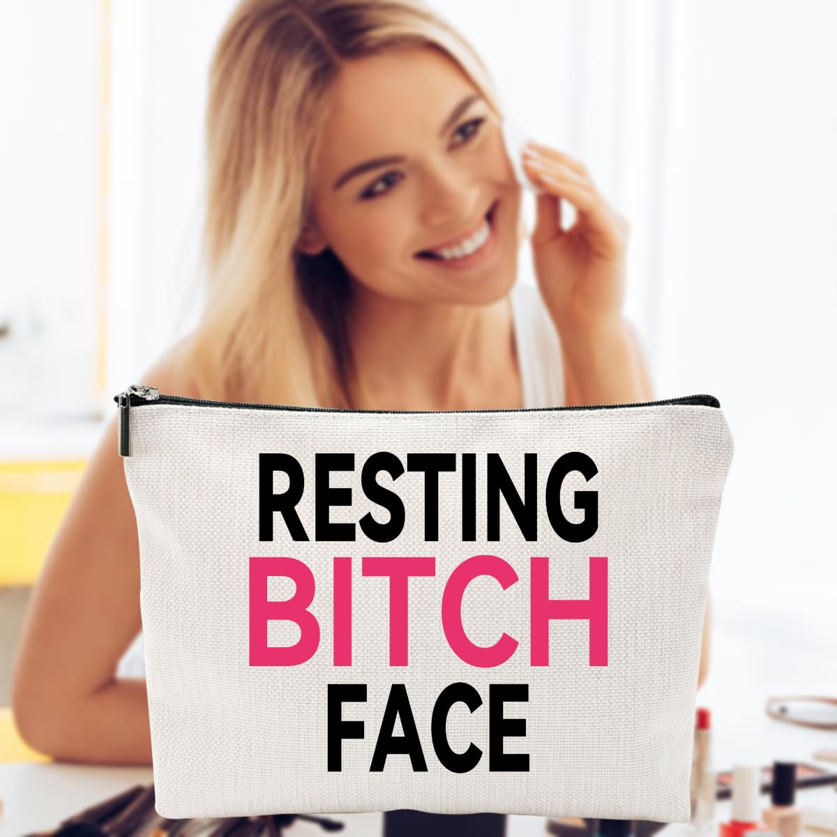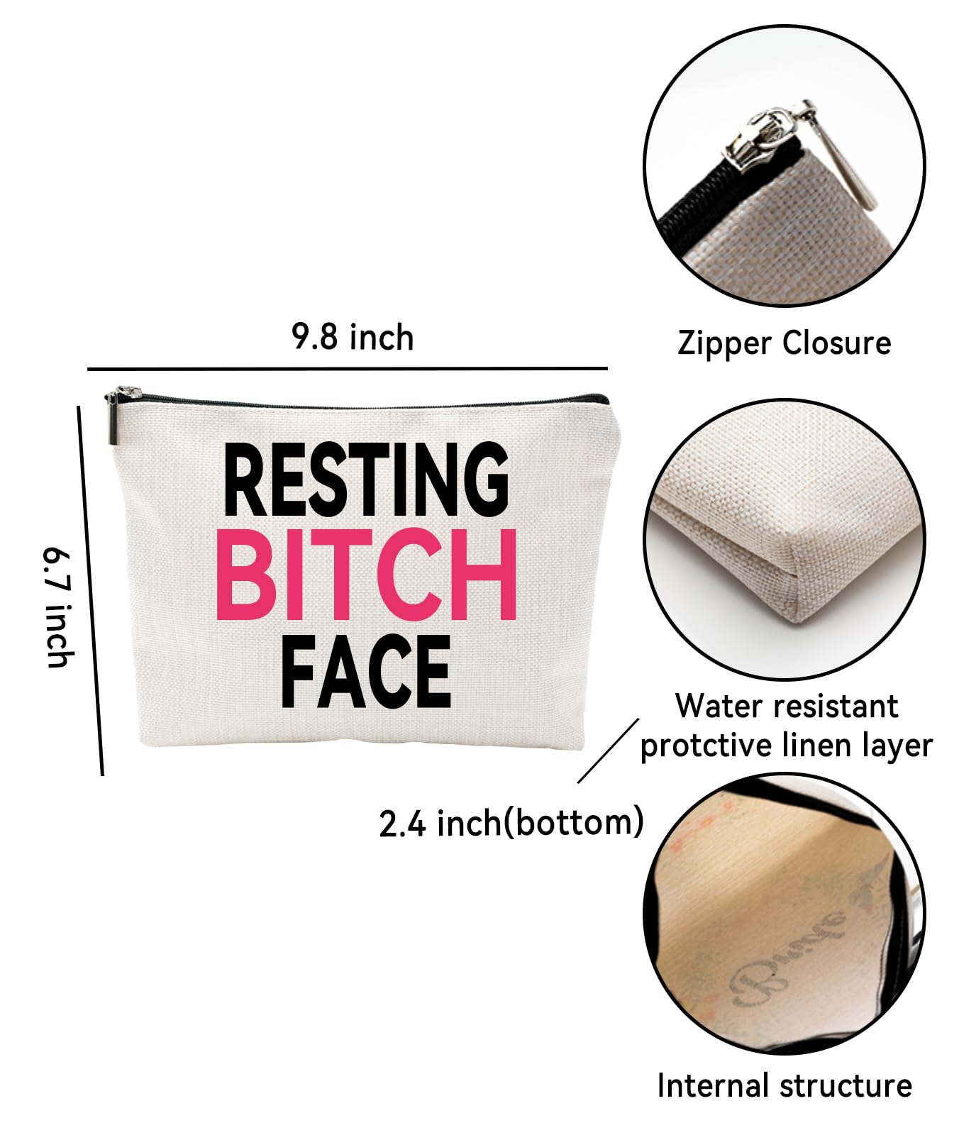 Sassy & Bold Statement – Featuring the phrase "Resting Bi*ch Face" in bold typography, this funny makeup bag is perfect for confident women who embrace their attitude.