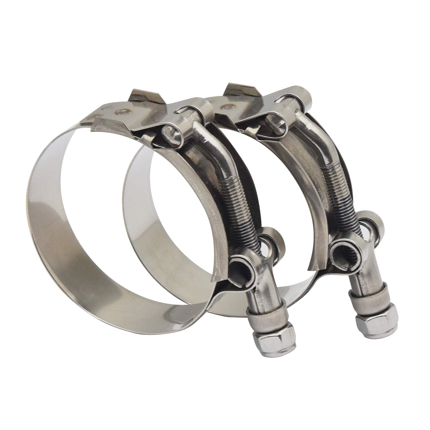 Roadformer 2.25" T-Bolt Hose Clamp - Working Range 52mm - 60mm for 2.25" Hose OD, Stainless Steel Bolt, Stainless Steel Band Floating Bridge and Nylon Insert Locknut (52mm - 60mm, 2 pack)