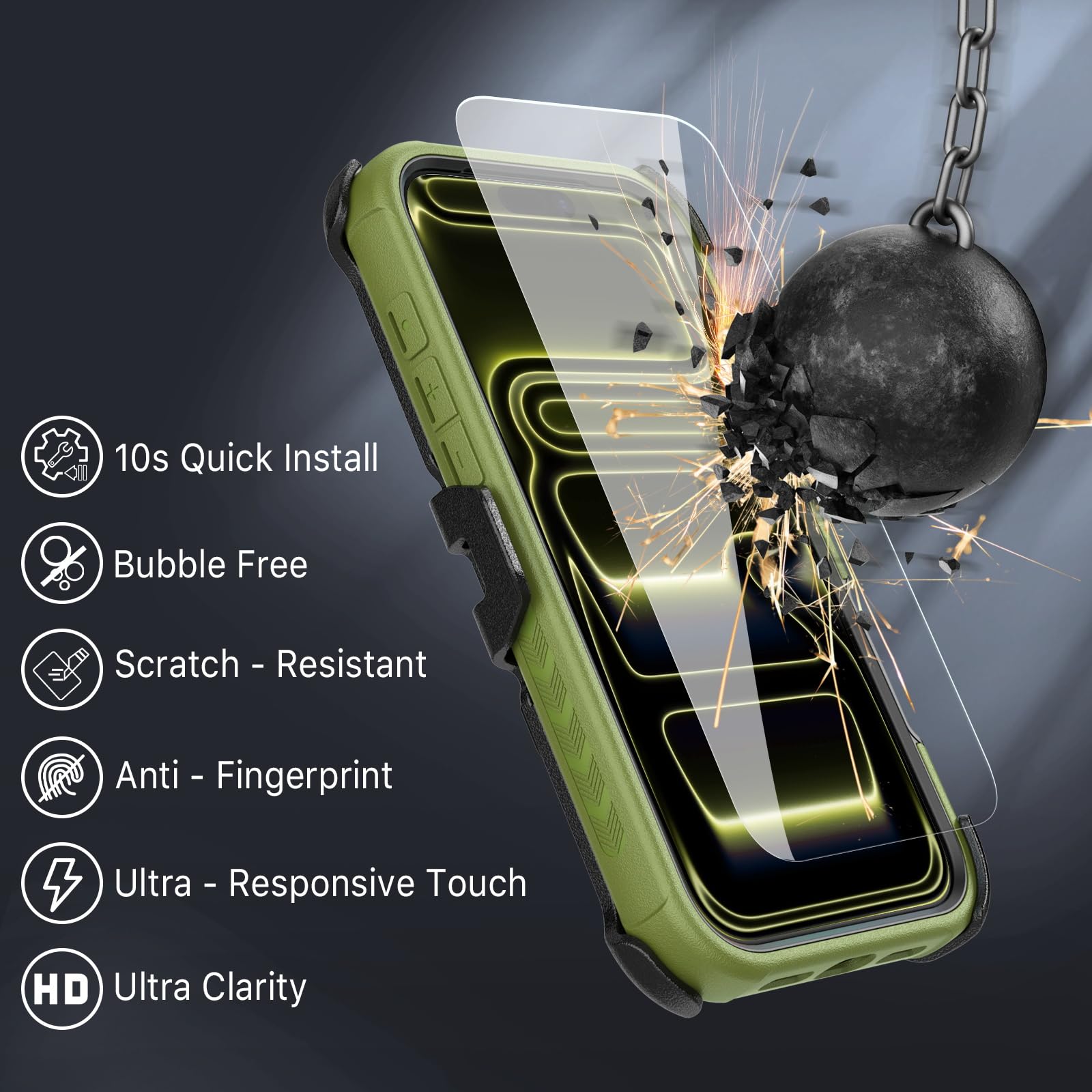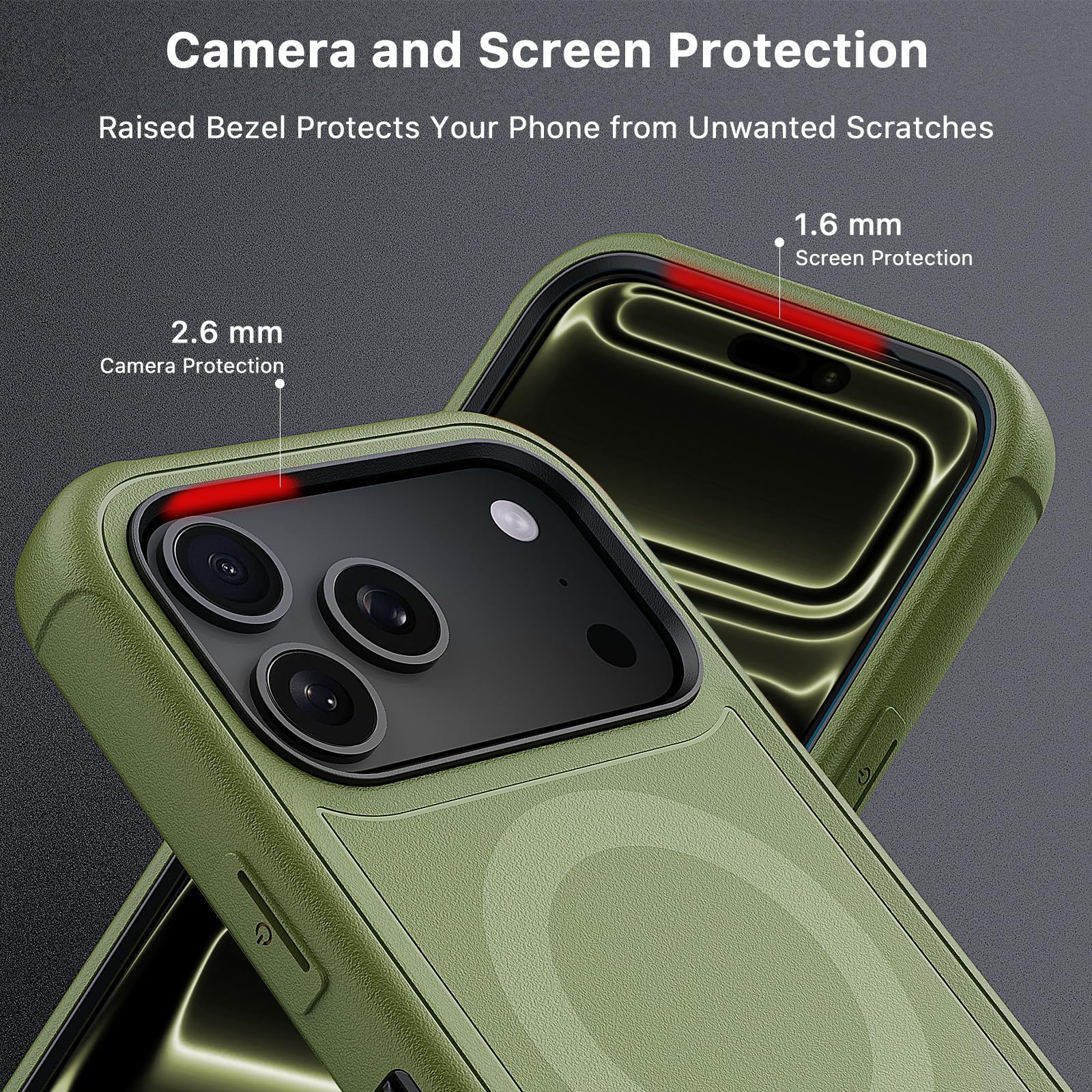 Extra Layer of Protection Case for iPhone 17 Pro Max:The 2.6mm Camera and 1.6mm Screen Raised Edges, Avoid Collision. Complete with a Tempered Glass Screen Protector, It Effectively Protects the Screen from Fingerprints, Smudges and Scratches.The Texturized Bumper Grip Prevents the Phone from Slipping out of Your Hands, Reducing the Risk of Accidental Drops and Slips.