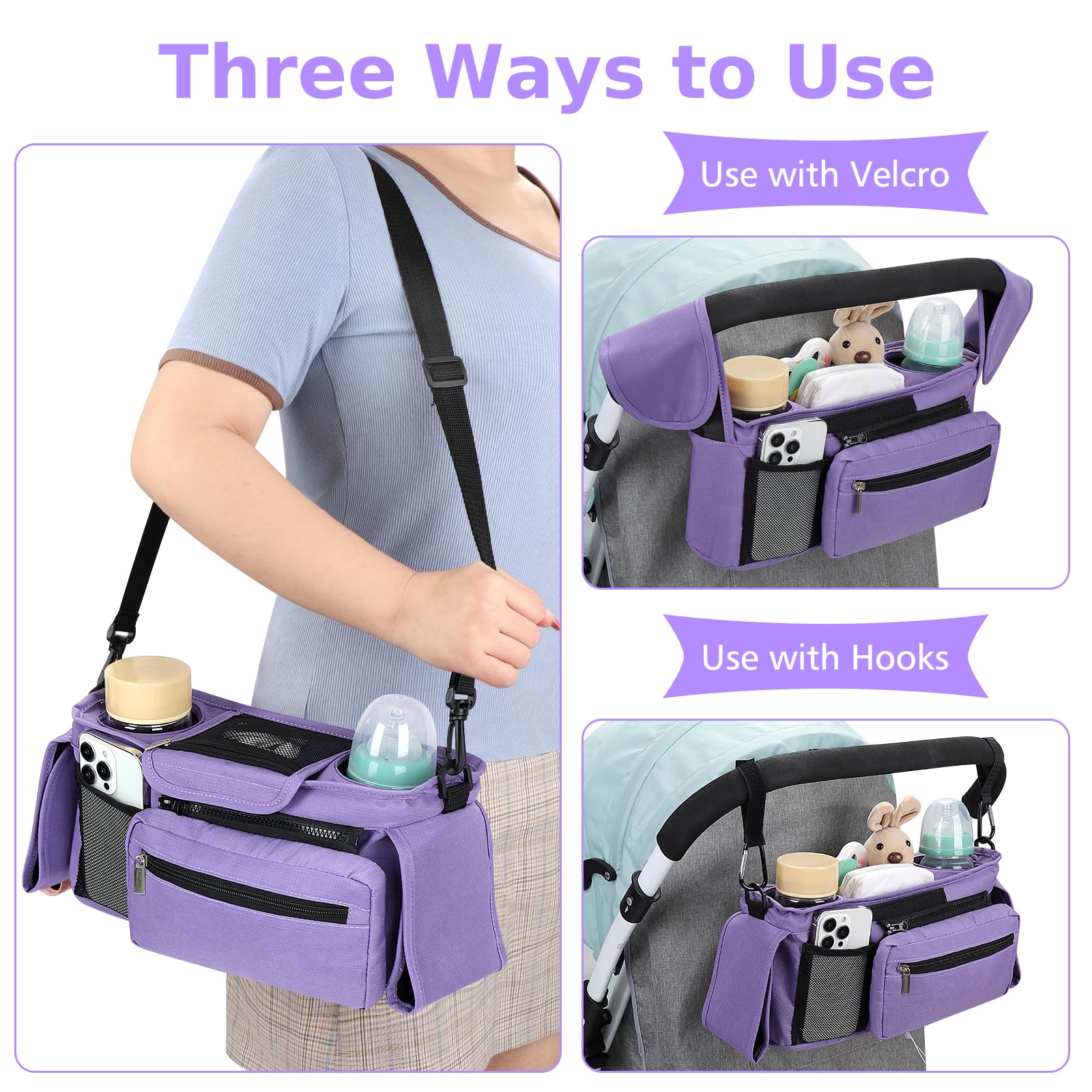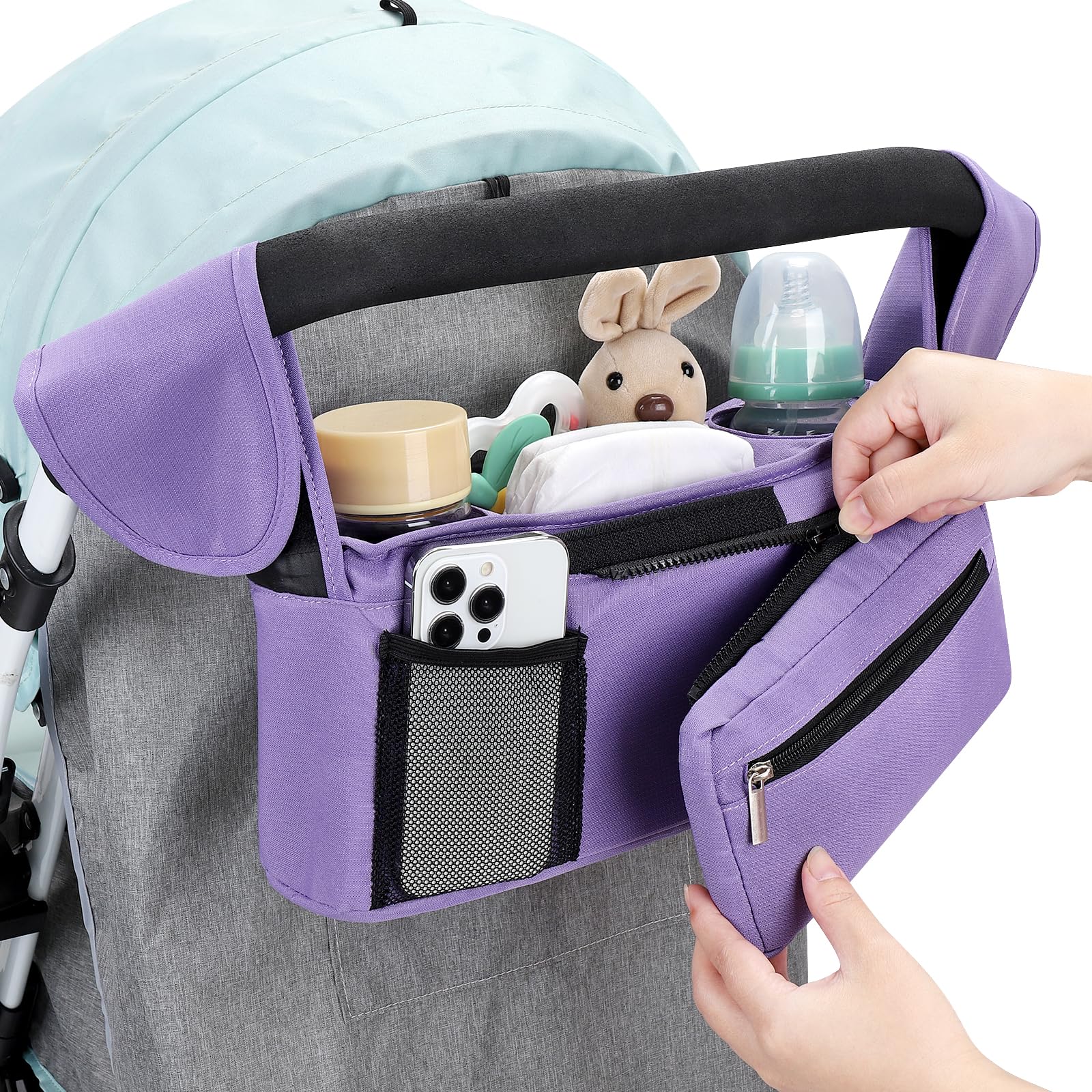Multiple Usage Methods : It can be hung as a stroller cup holder organizer on the stroller. When you don't need to use a stroller, you can also install the accompanying strap and carry this organizer bag for easy outing.