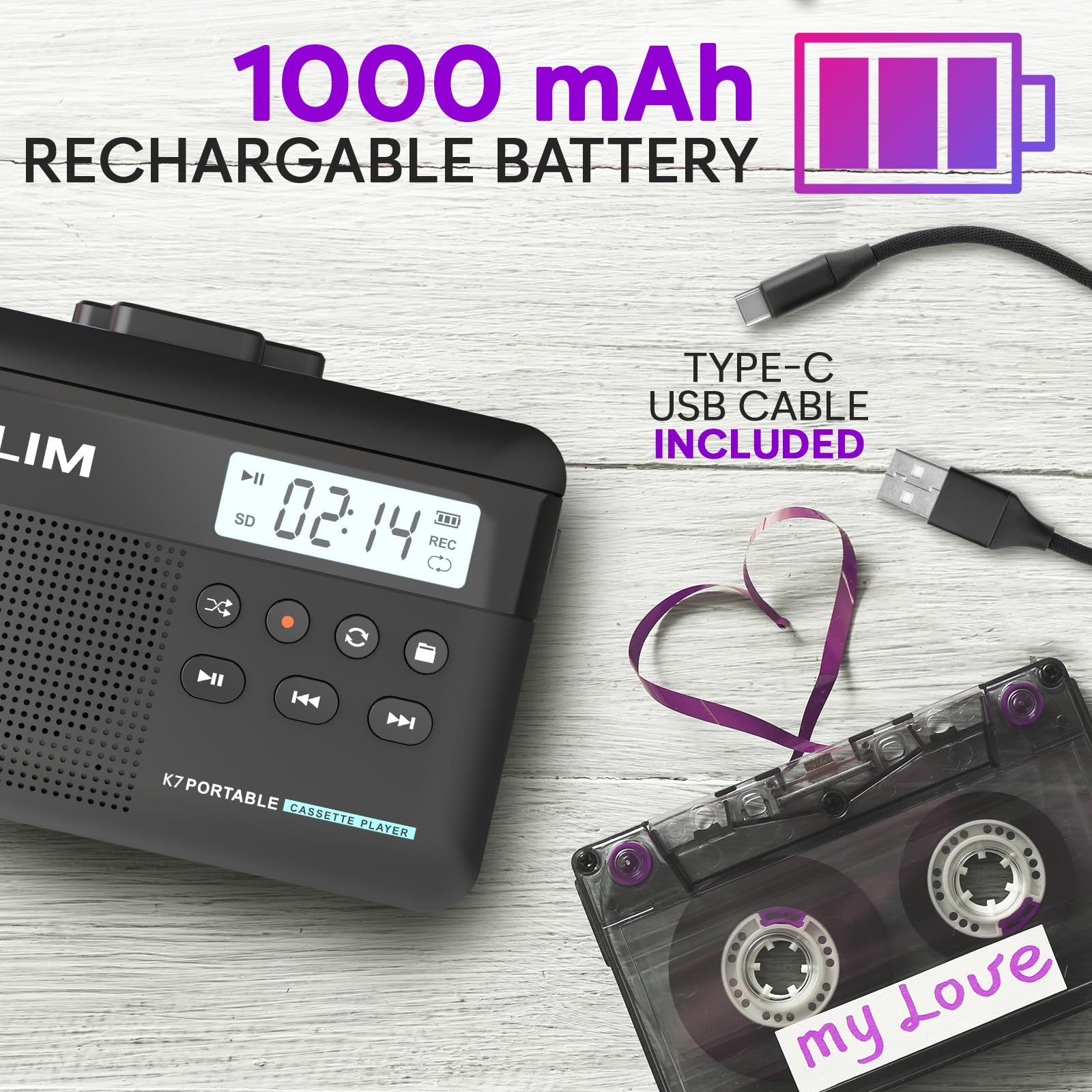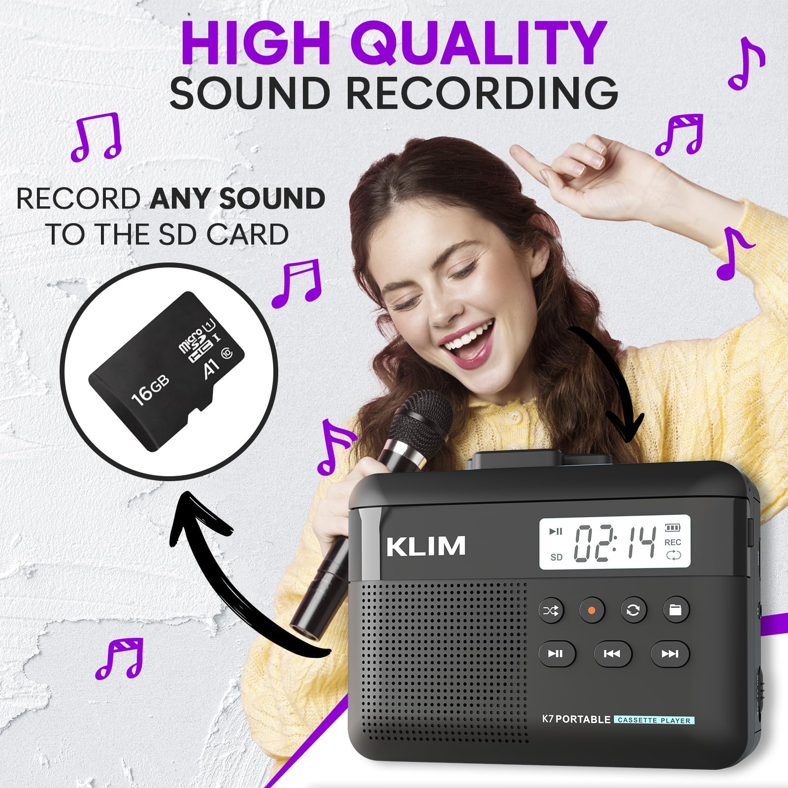BUILT-IN MICROPHONE & SPEAKER: A cassette recorder and player that allows you to easily record your thoughts, meetings, or impromptu music sessions with the built-in microphone. Or, share your music with friends using the integrated speaker for an immersive listening experience. Notably, while you can record directly onto the SD card, the KLIM K7 does not support recording onto cassette tapes.