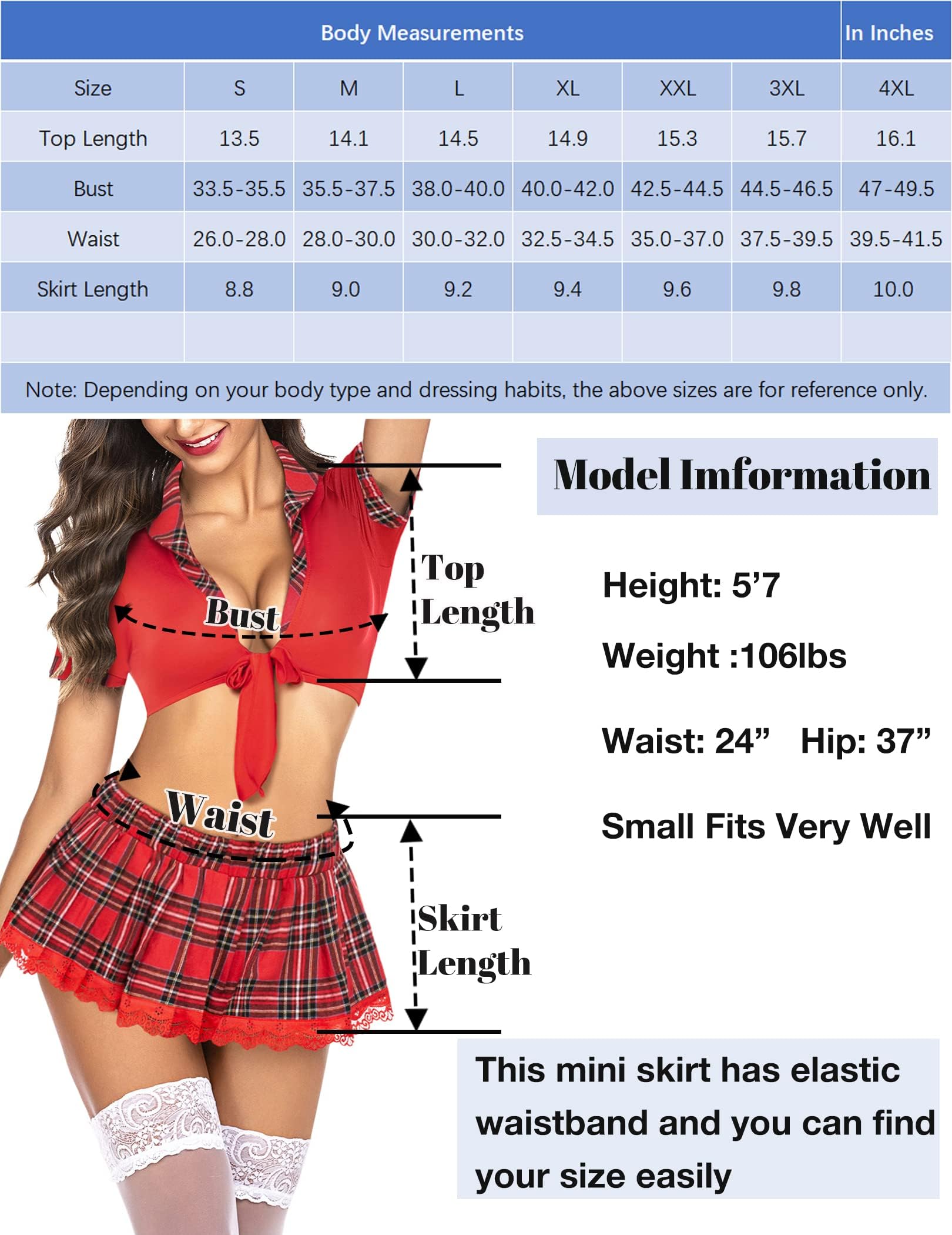 The crop top of this school girl outfit features tie-front closure and it is easily adjustable to any sized chest. Also it has strong support that will make you confident and look charming.