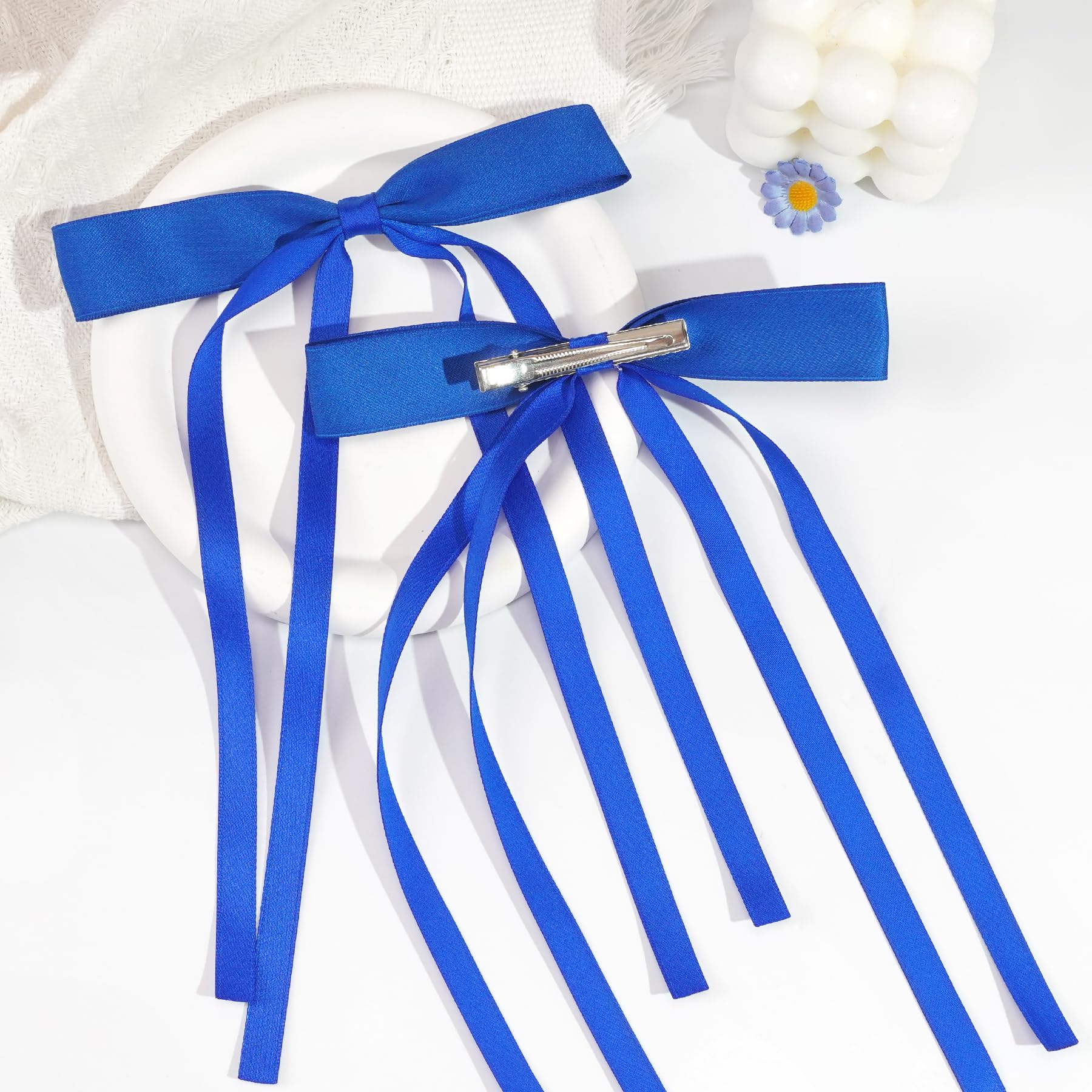 4pcs Hair Clips for Women Tassel Ribbon Bowknot Hair Clips With Long Tail, Women Hair Clip for Girl, Solid Hair Clips Long Hair Accessories Barrettes Claw Hair Clips With Bow, Wedding Party Decorative Hair Rope Valentines Day Birthday Mother’s Day Gift Handmade With Love: Each of our bows is made from premium quality materials. It is carefully hand-sewn, pressed, tied with great care and attention to detail. All bows are handcrafted in a smoke-free and pet-free home. Great For All Ages: These darling hair clips look great on little toddler girls (with hair), teens, and Women! They’re the perfect bows. Adorable Accessory For Photos: On your important days, it can take pictures with you to add points to your beauty and make you leave the best memories. Specification: Size:6*9inch Colors :Royal Blue Material: Ribbon Product Package: 4*Bow Hair clips