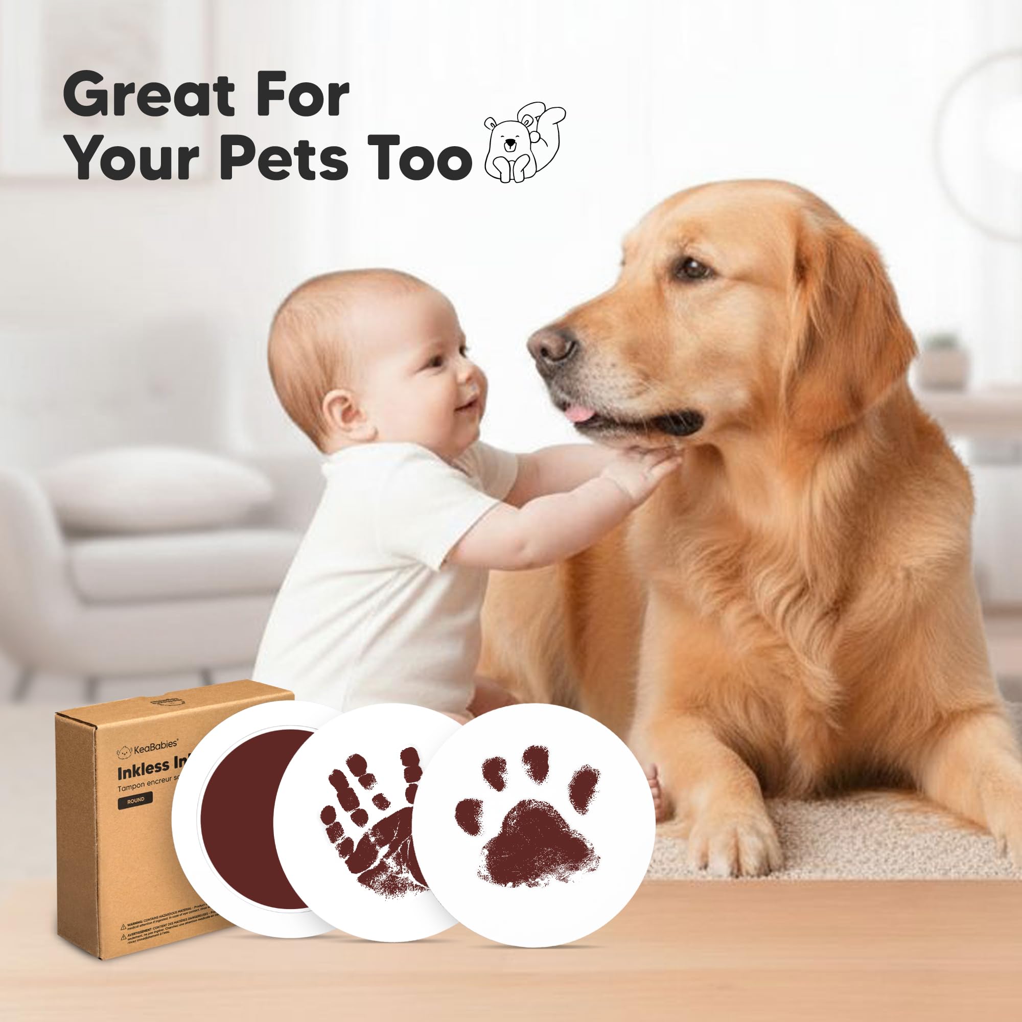 Perfect Ink Pad Size - Our ink pad for baby hand and footprints are sized at 4.5” by 4.5” with an ink window of 3.4” by 3.4”, ideal for newborn baby’s 0-6 months hand and footprints or your fur baby’s paw print. Easy to use, it takes less than a minute to create a precious newborn baby keepsake as Mother's Day gift.