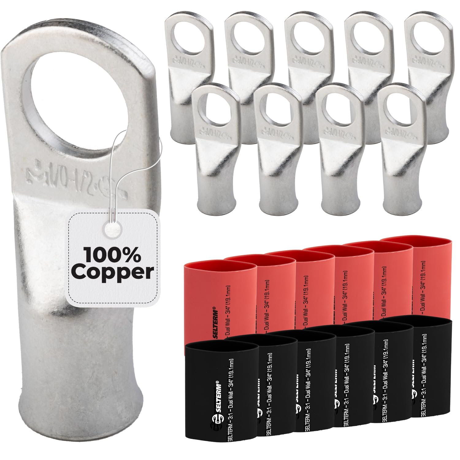 Heat-Resistant Durability: The Selterm Copper Lugs Kit comes with 12pcs 3:1 Black & Red Heat Shrink Tubing with Adhesive. This tubing offers excellent insulation, protecting connections from heat, moisture, and corrosion, thus extending the life of your battery setup.