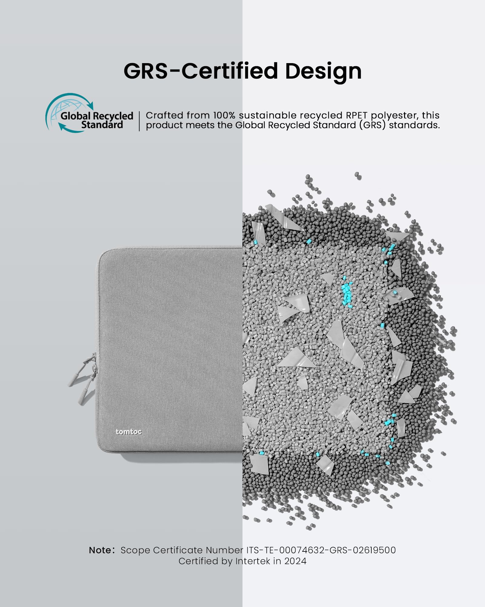 Quality Meets Performance: The premium spill-resistant recycled fabrics, YKK zippers, sophisticated interline-designed soft lining, and craftmanship meet the highest standard for a MacBook sleeve. Insisting on human-centered design philosophy, we use recycled fabrics and have consumed hundreds of thousands of discarded plastic bottles to save our planet