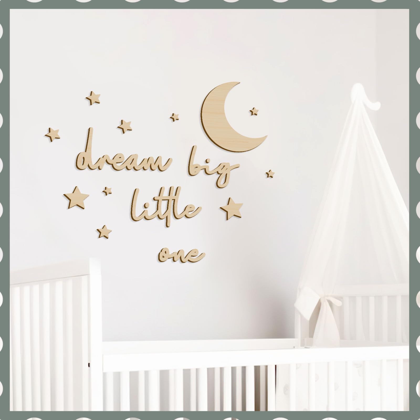 Complete Package: your dream big little one wall decor comes in a complete set, ideal for decorating your child's room; The package includes dream big little one 4 letter signs, 10 stars of different sizes, and 1 moon sign