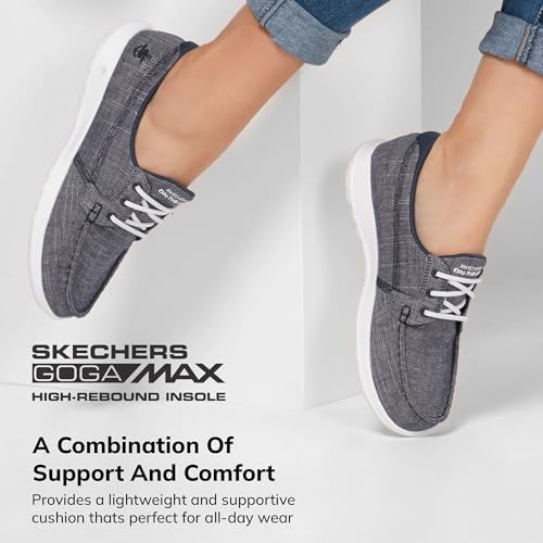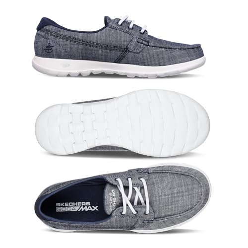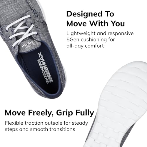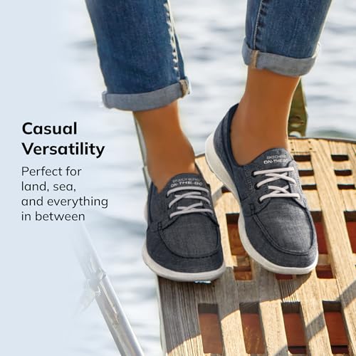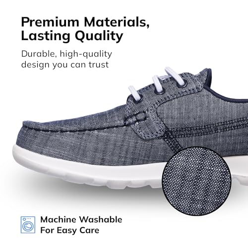 Description Heathered linen moc toe boat shoe with ez fit closure
