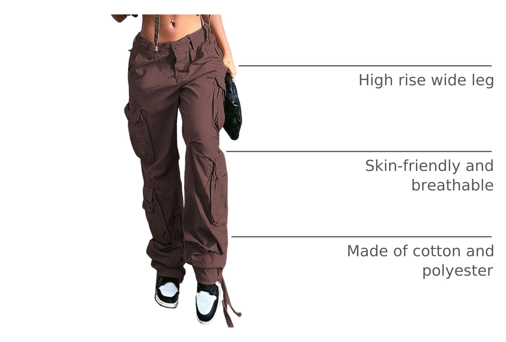 Features-Women's baggy cargo pants, high rise wide leg, hide zipper for easy opening and closing, practical pocket design, loose fit for maximum free, trend and fashionable.