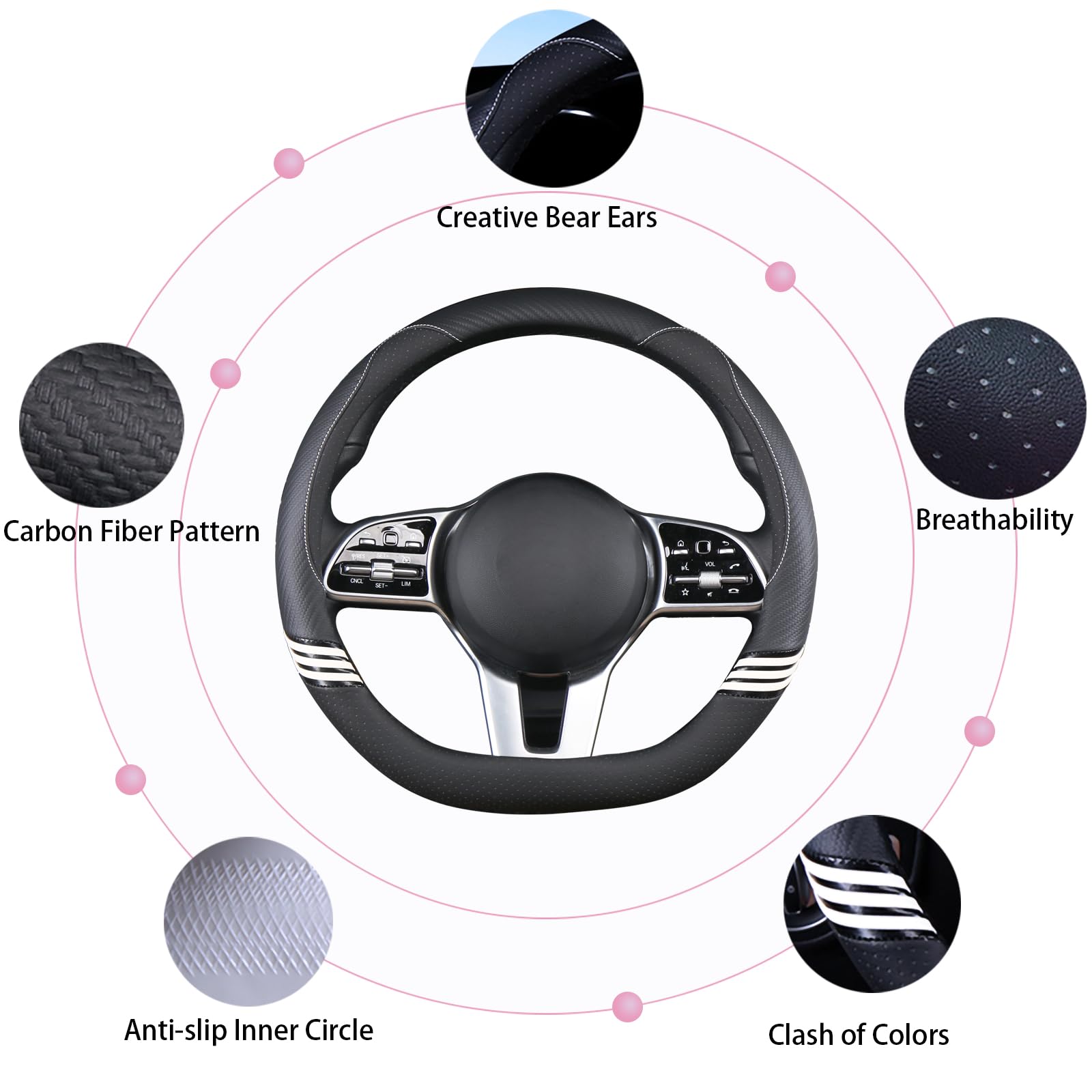 CUTE LEATHER CAR STEERING WHEEL COVER: Cute Bear Ears Shape Steering Wheel Cover, Ideal for Women, Men, and Friends.