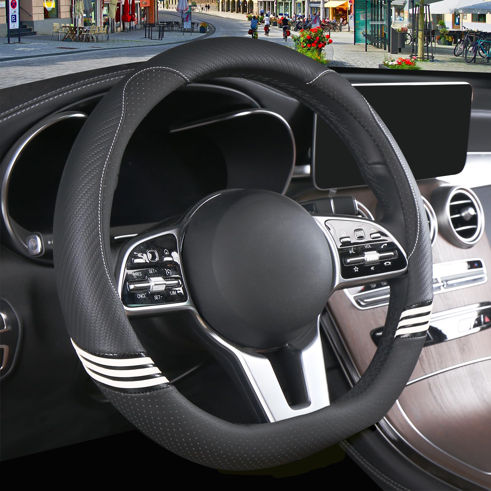 BREATHABLE LEATHER STEERING WHEEL COVER: Made out of superior breathable leather. Heat resistant, cold resistant and wear-resistant.