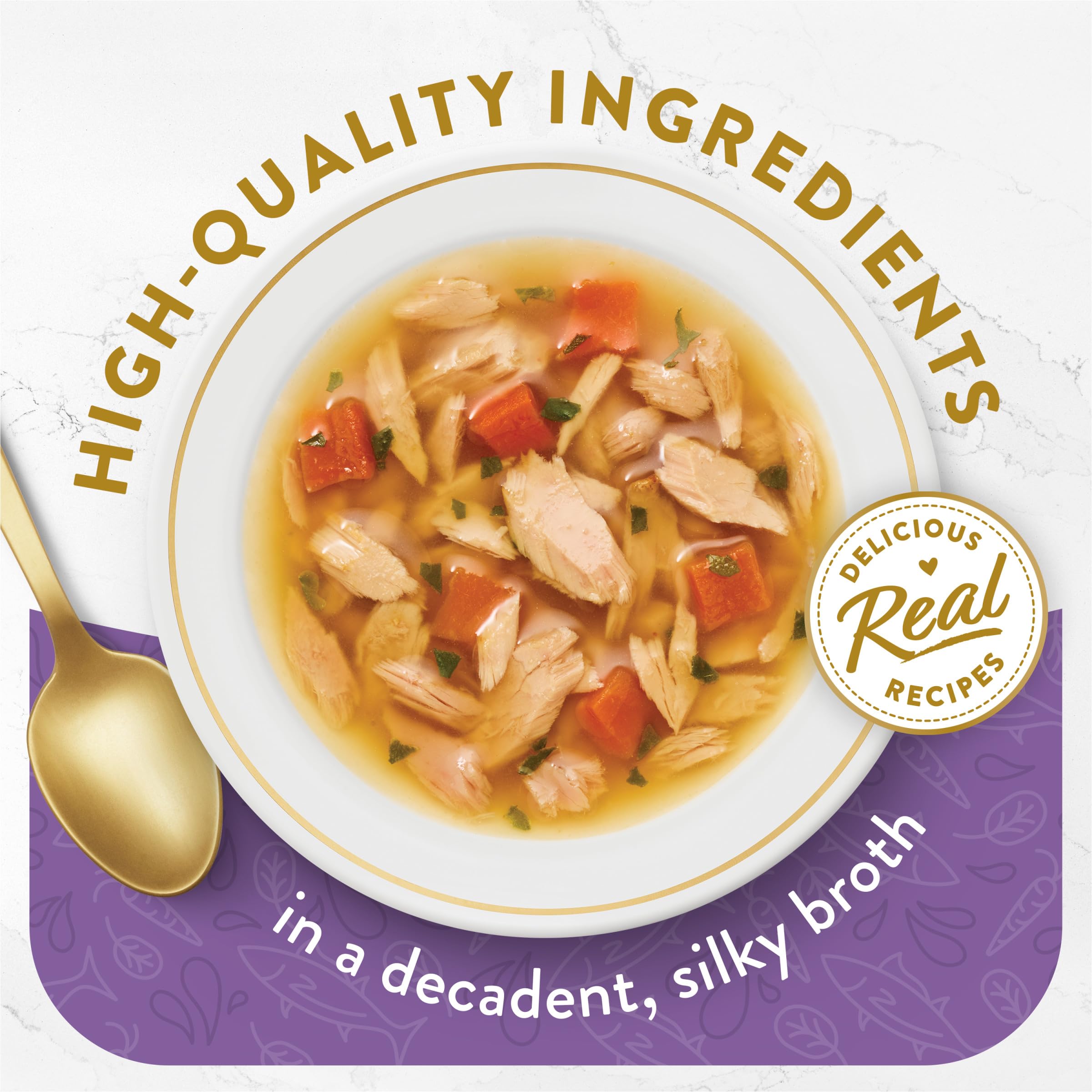 With wet cat food tuna, this broth for cats is part of the complete line of Purina Fancy Feast gourmet toppers