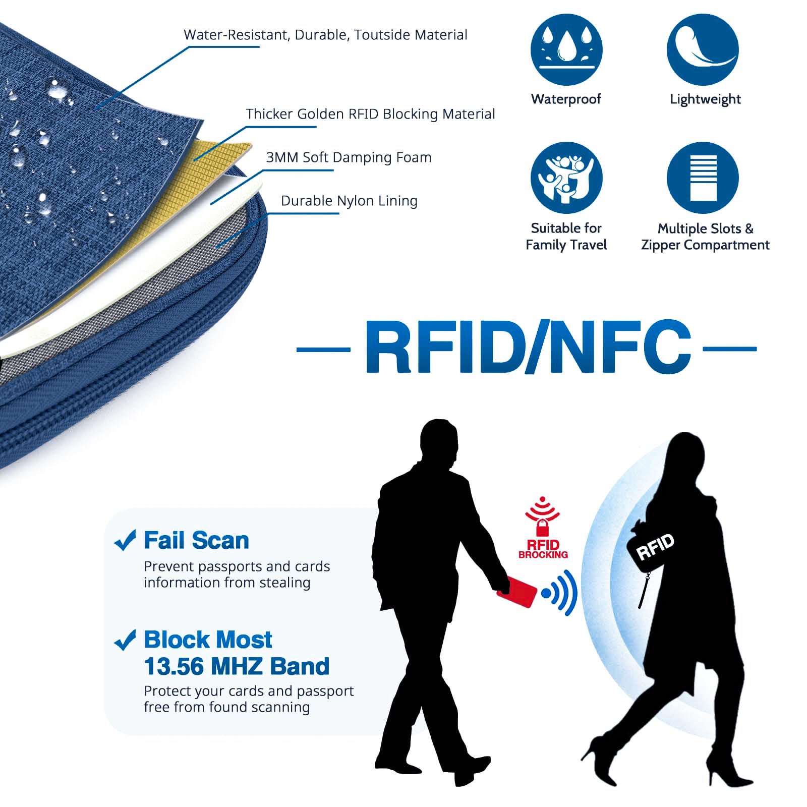【High Quality travel passport holder】This passport wallet and passport book holder is made of super strong and durable polyester fabric, waterproof and stain resistant, lightweight material for easy carrying, strong zinc alloy zipper makes it more durable; Rfid passport wallet looks very attractive design, can be a great passport holder wallet choice for men, women, friends and family.