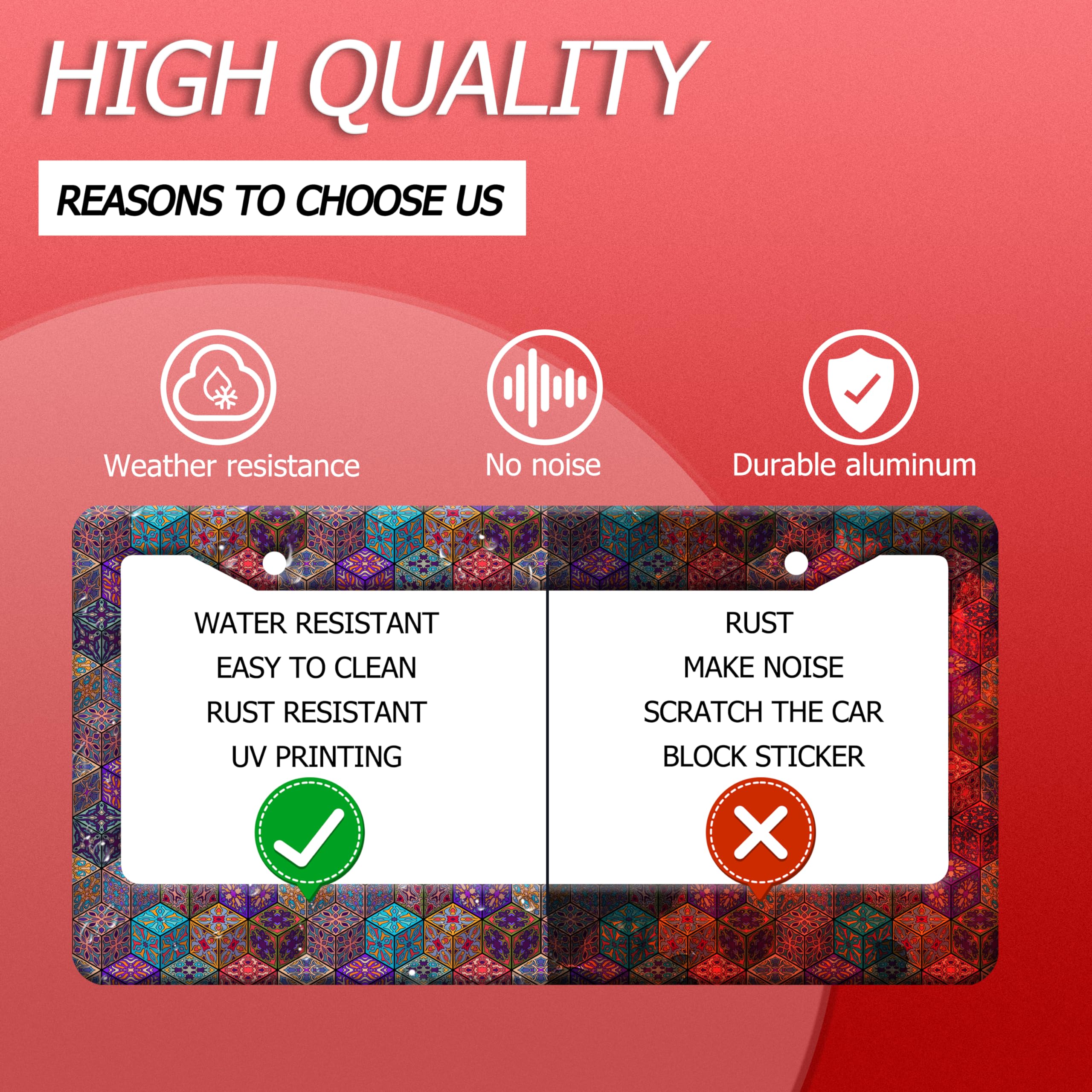 【Excellent Printing Concept】Use Advanced digital printing Protects license plate frames ,Whether it's a car wash, heavy rain or hot weather, it still looks brand new,Let your car still be unique and stylish while driving on the road.