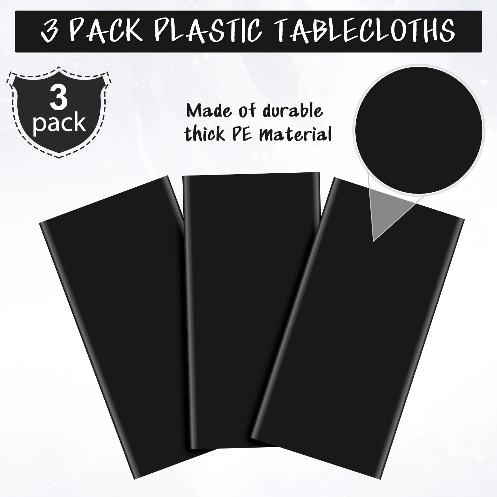 Packing Include: you will receive 3 pieces of plastic table cloth disposable for rectangle tables in black,this black disposable tablecloth each measures 54×108 inches,which fits for most rectangle tables of 8-10 seats,sufficient quantities can meet your use and replacement needs.