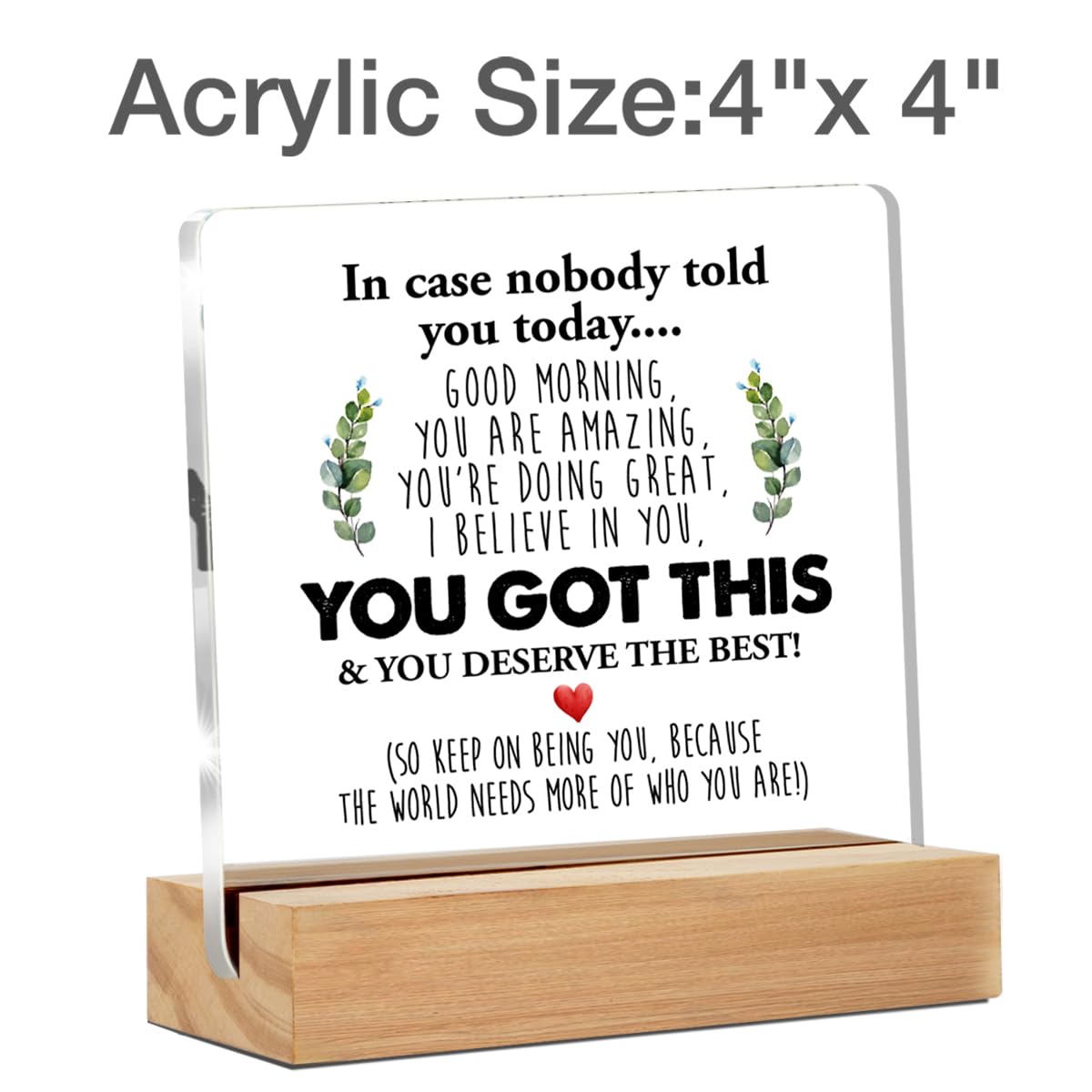 Perfect Size - 4 x 4 inches acrylic sign, 4 x 1.5 x 0.8 inches wood stand. Perfect size to decorate any tabletop.