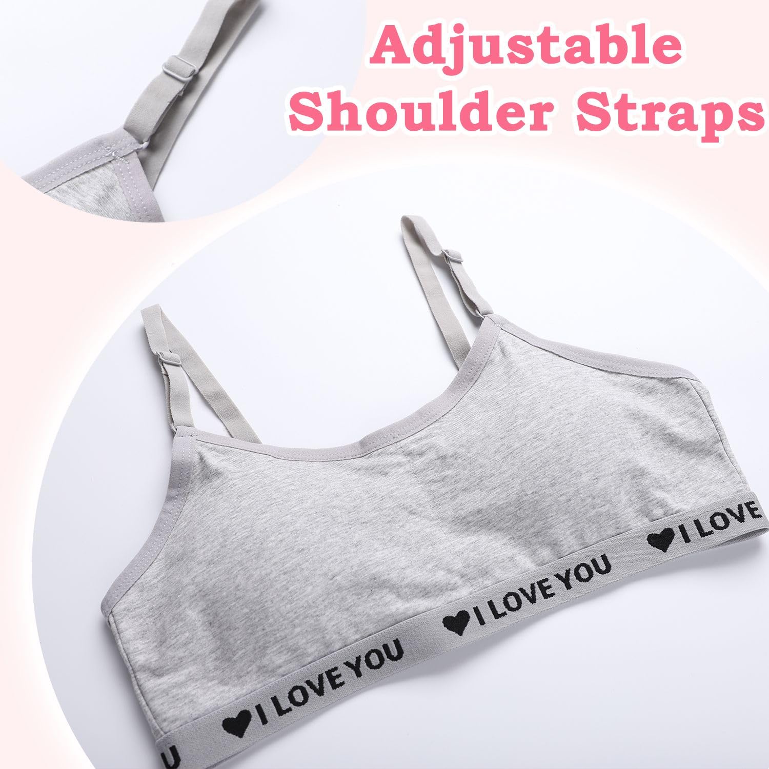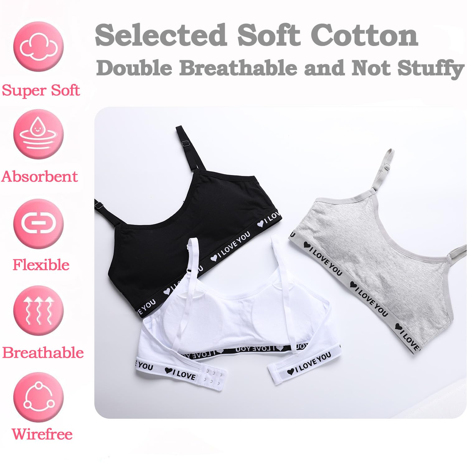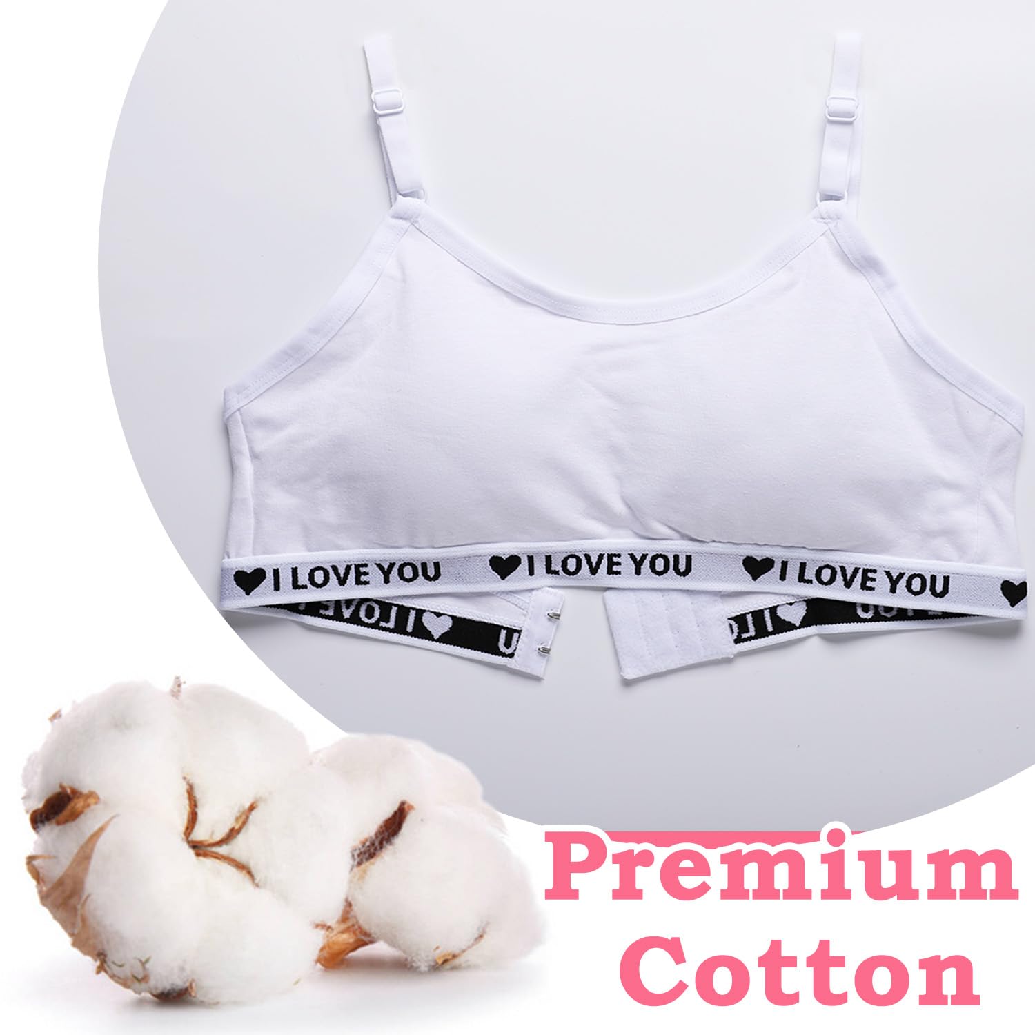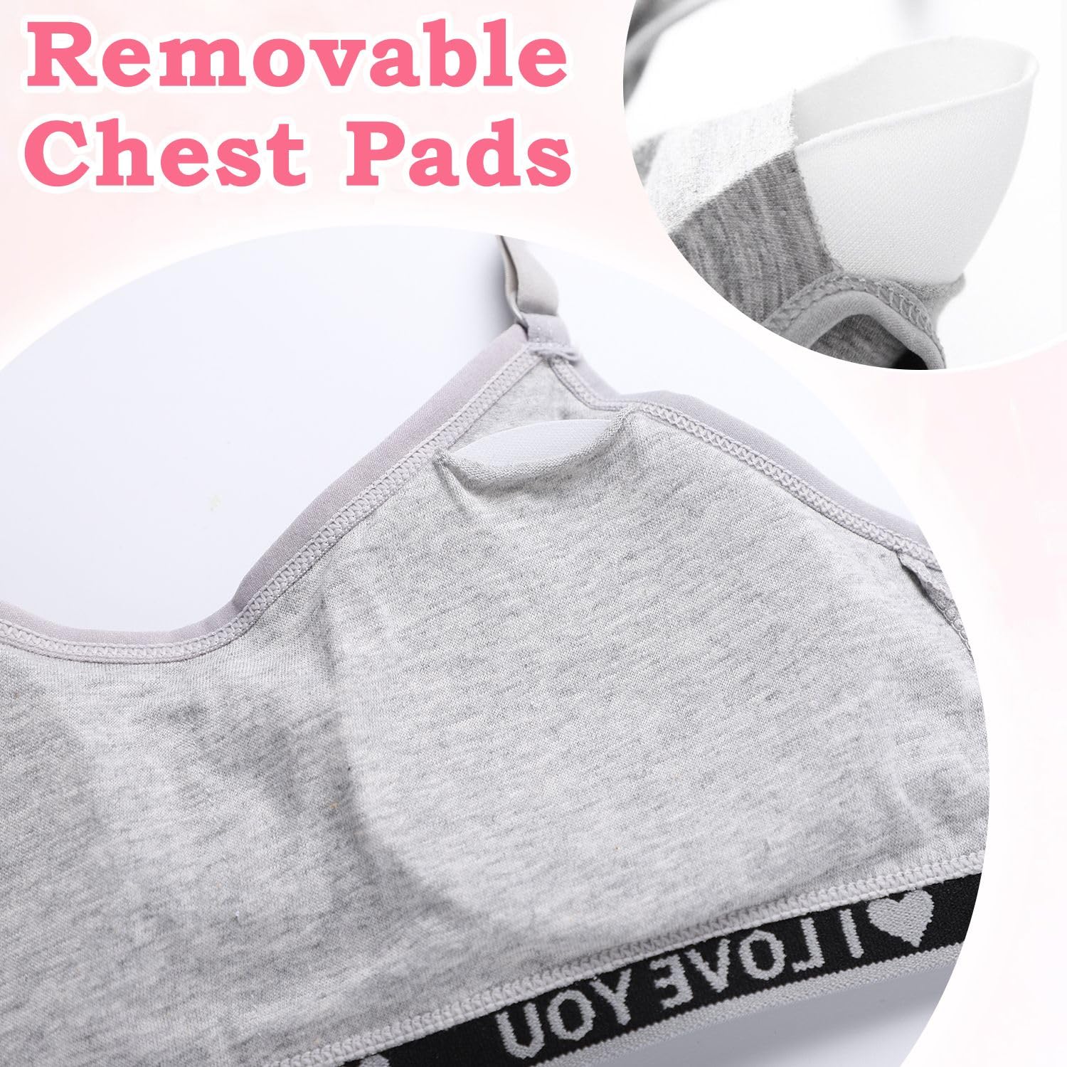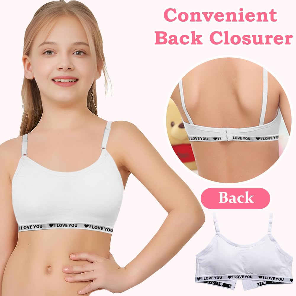【Comfortable and Breathable】This teen girls bra is made of soft cotton which won't hurt the girls' delicate skin.The breathable fabric will keep you cool and dry all day long even if you wear it to participate in various activities.