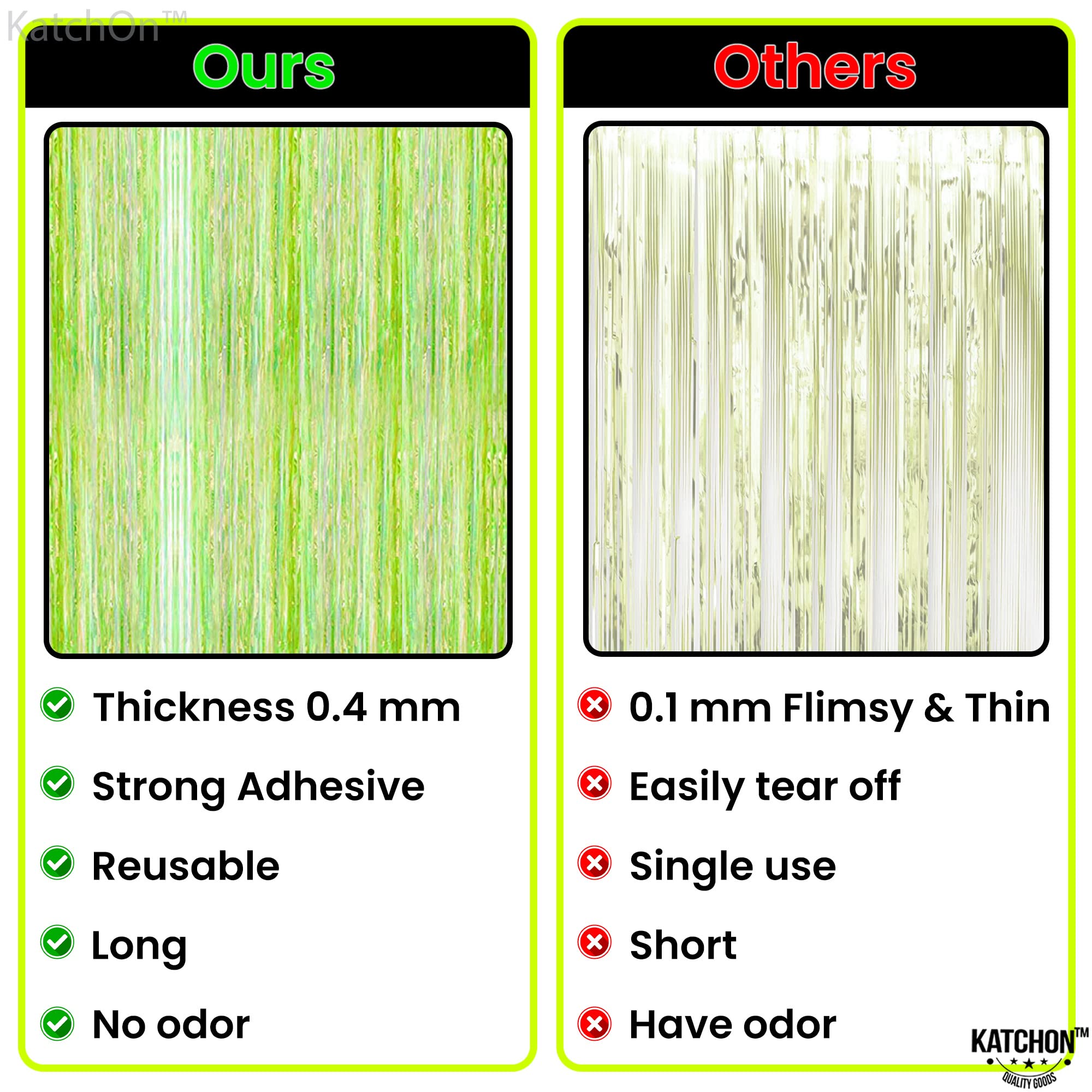 REUSABLE & STUNNING FOR PHOTOS: This elegant lime green foil fringe curtain is an ideal choice for the photo booth you’ve prepared. Everybody will love taking selfies in front of this glimmering green fringe backdrop. It's durable enough to be reused for neon birthday party decorations, luau party decorations, or as part of your glow party decorations. You can also add banners and balloons with these green streamers to complete your green party decorations.