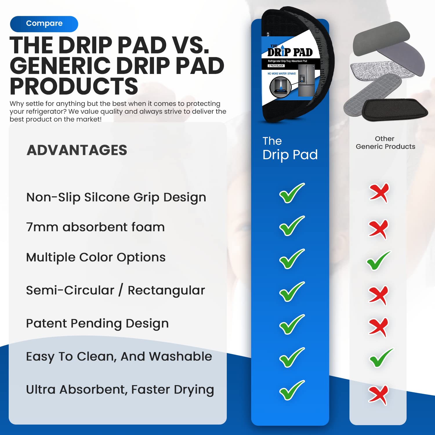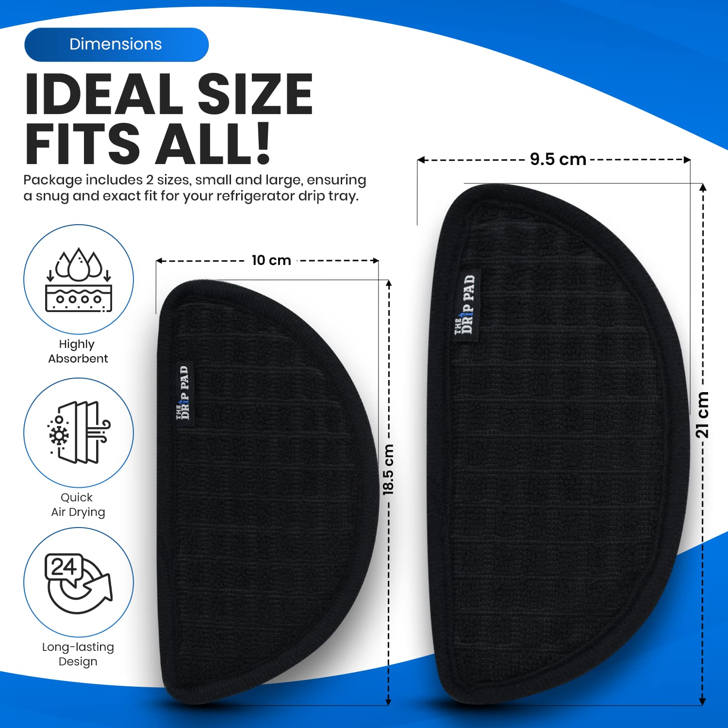 💧 Fits Most Fridge Drip Trays - Between the Semi-circular and Rectangular design, the Drip Pad is sized to fit a wide variety of drip trays