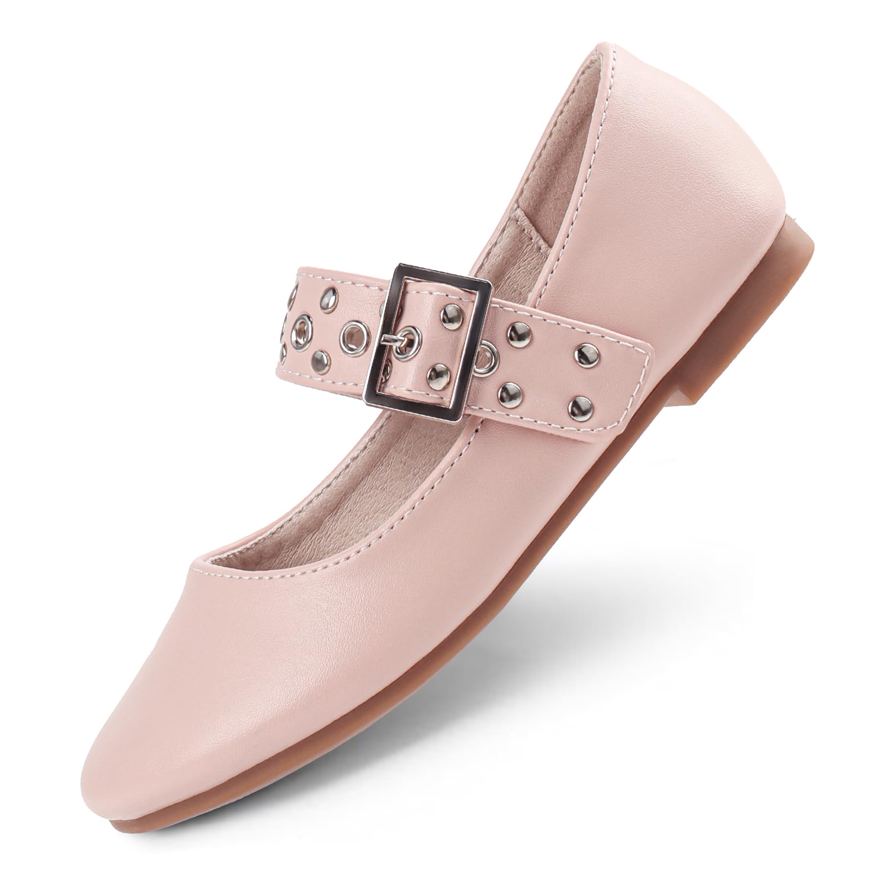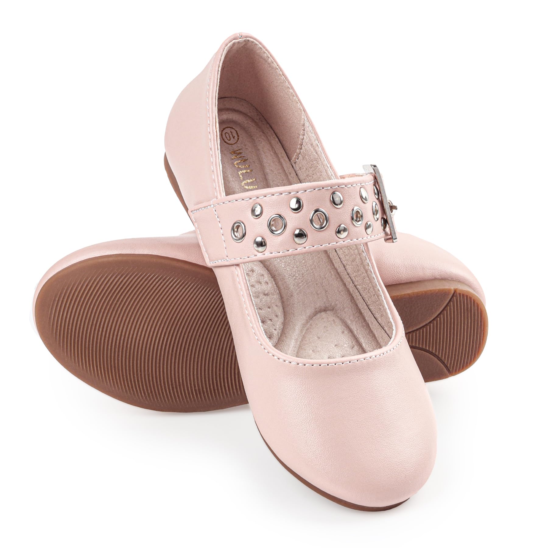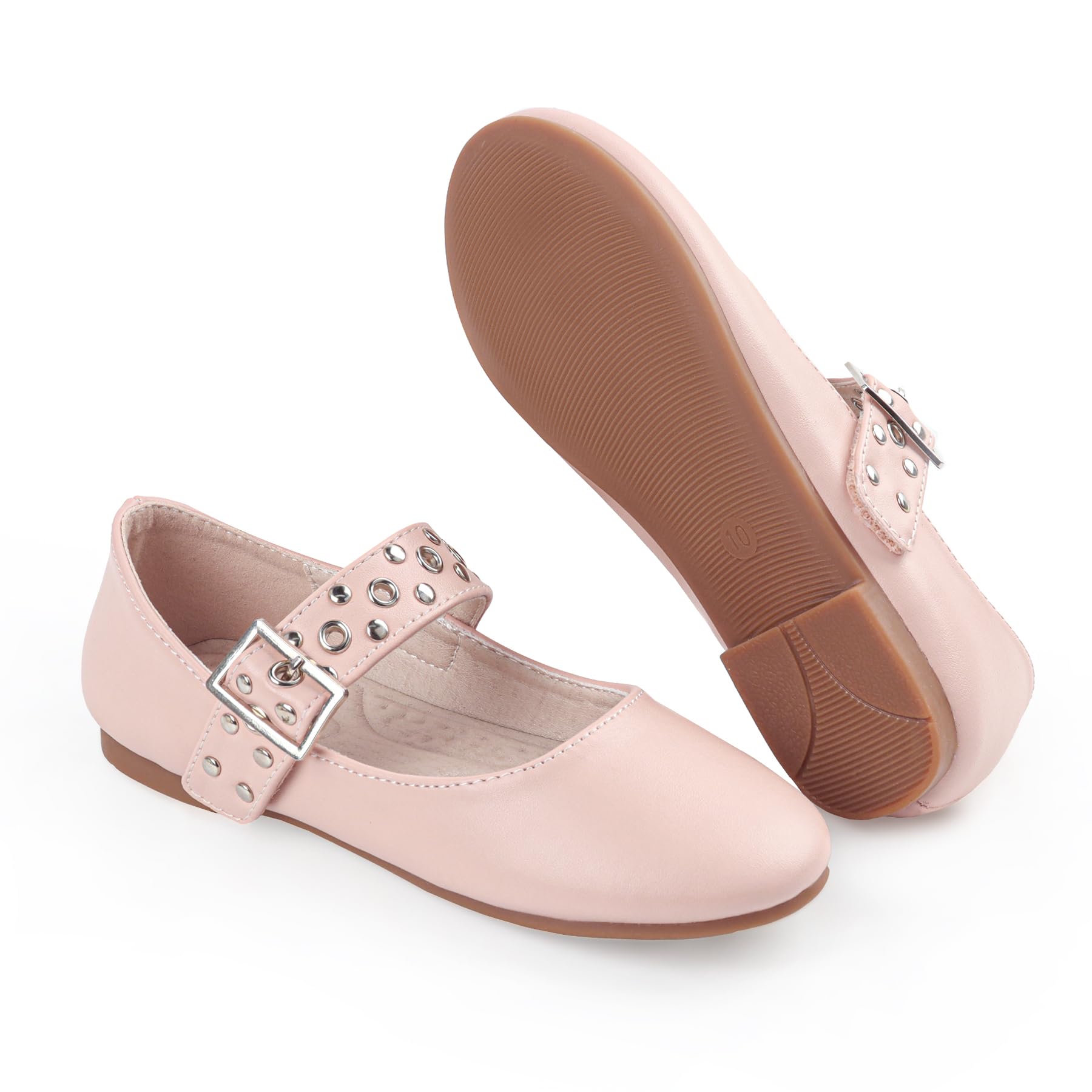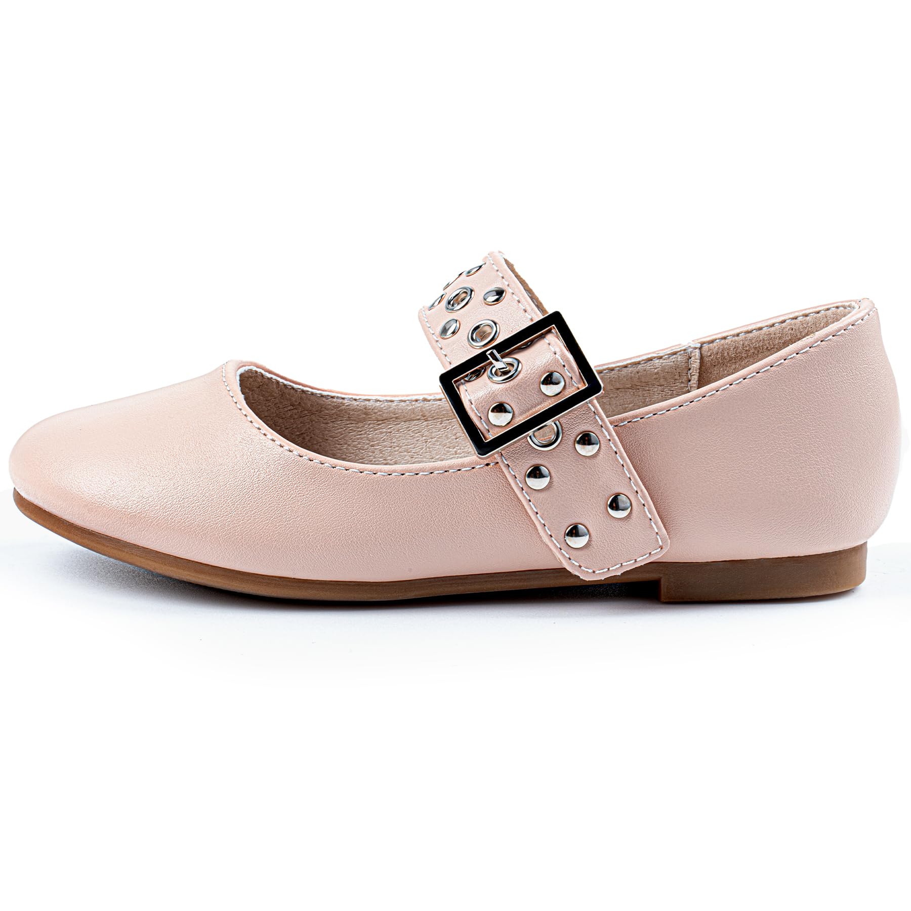 【Fashionable & Simple】Girls dress shoes are made of PU upper and silvery studs complement each other, Adjustable buckle easy to adapting to different foot shapes exuding the charm of simplicity and fashion