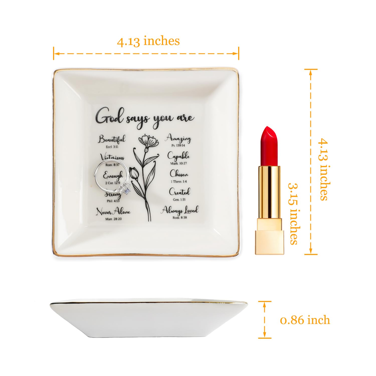 [Excellent Design and Refine Details] Crafted from great quality glazed ceramic with square shape ring dish and gold trim,Well packed with white box.