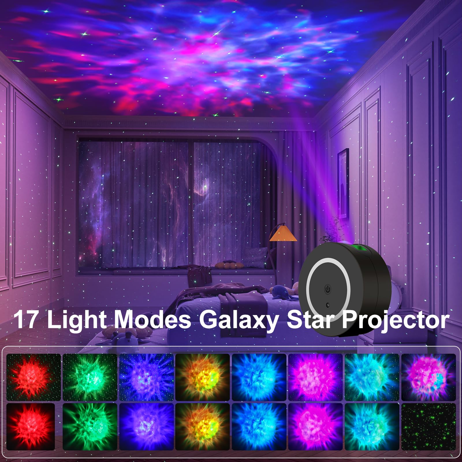 【17 Modes Galaxy Projector for Bedroom】Nebula Mode & Star Lights Mode can create 17 different lighting effects to suit your different needs. When you get home from a long day, turn on this galaxy light projector and it will make your entire room feel relaxed and comfortable.