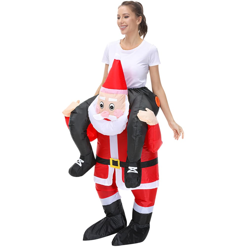 ZISUEX RIDE ON SANTA INFLATABLE COSTUME ADULT MATERIAL:ZISUEX Ride on Santa funny costumes made of 100% Polyester santa blow up suit with good quality ,waterproof , breathable,santa claus costume for men material to keep your skin comfortable