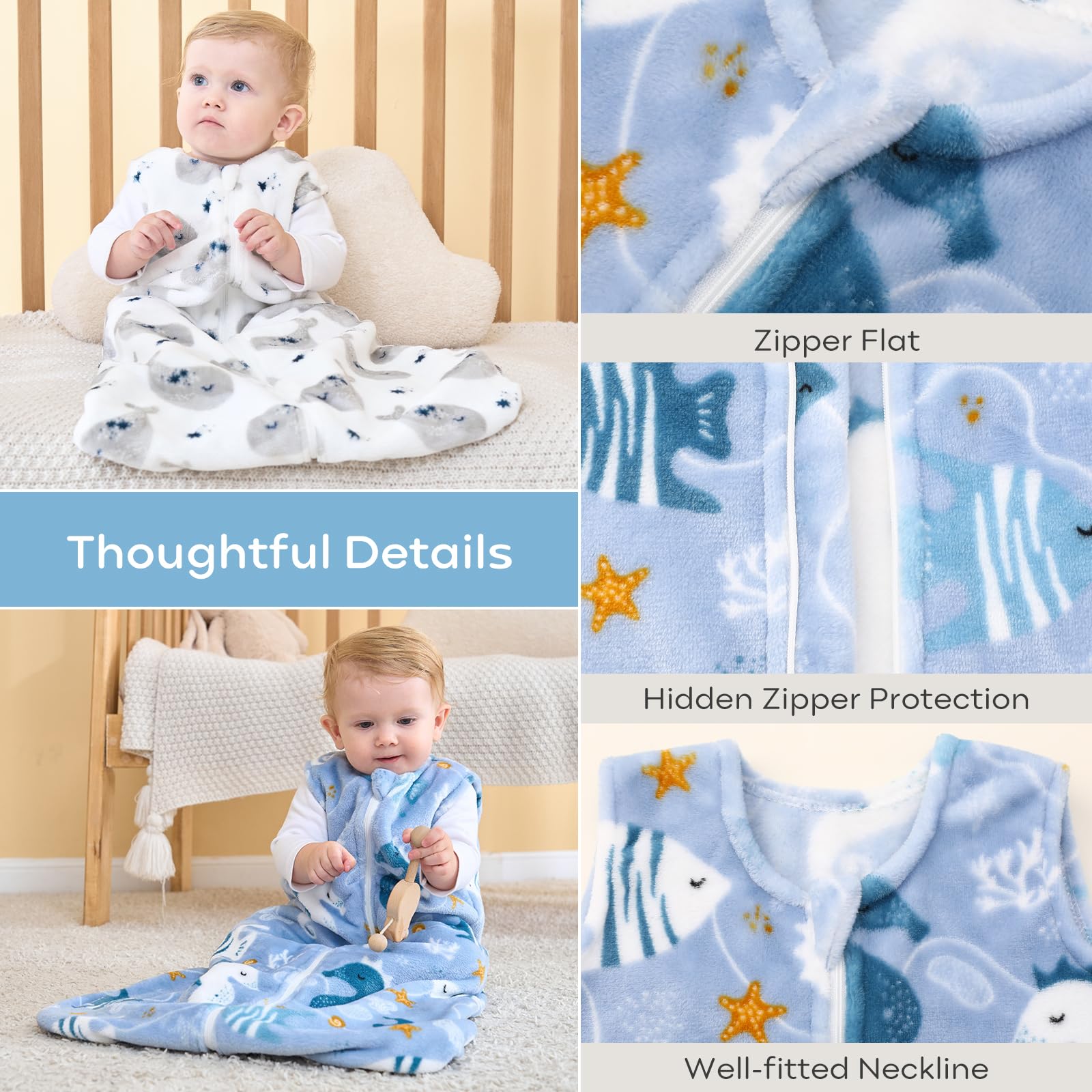 Healthy Development - 8Mm long plush can lull baby fall asleep quickly, transform fleece sleep sack into an invaluable ally for moms and soothing your precious one. Moreover, our baby sleeping sack provides ample room for kicking freely, keeping baby comfortable all night and healthy hip development.