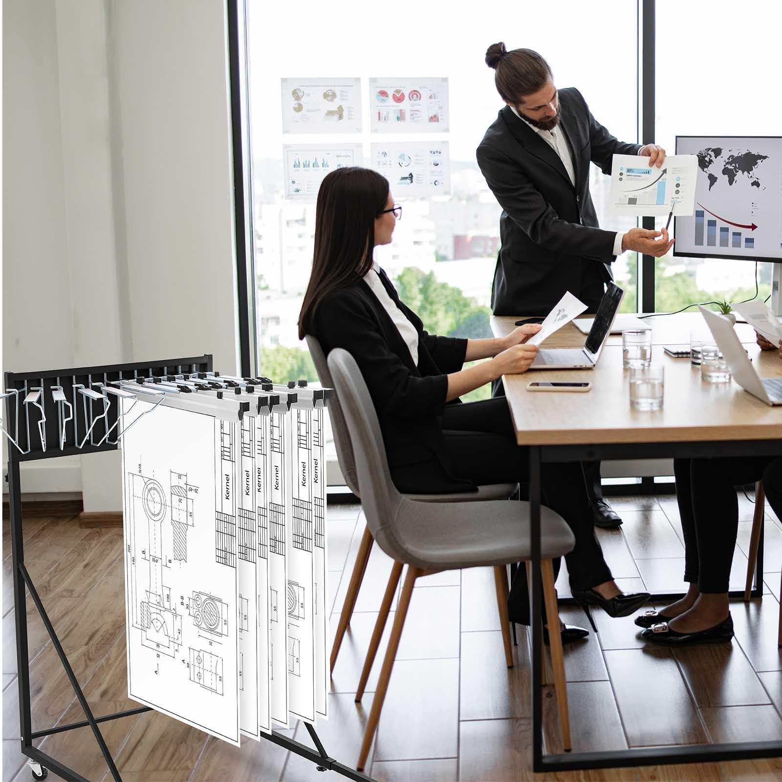 High Capacity: the blueprint storage rack has been designed for high load capacity; Each hanging clamp can hold up to 100 drawings, this allows for systematic organization of numerous documents; Turn your disordered workplace into a streamlined, well organized space. blue print storage organizer is not limited to storing and displaying blueprints, it can also be used as a poster display stand, architectural drawing storage, map storage and other uses you need